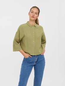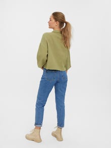 Cropped top with a shirt collar, wide sleeves, and dropped shoulders. Style this gorgeous top with a pair of denim shorts and a pair of sneakers for a casual everyday look.