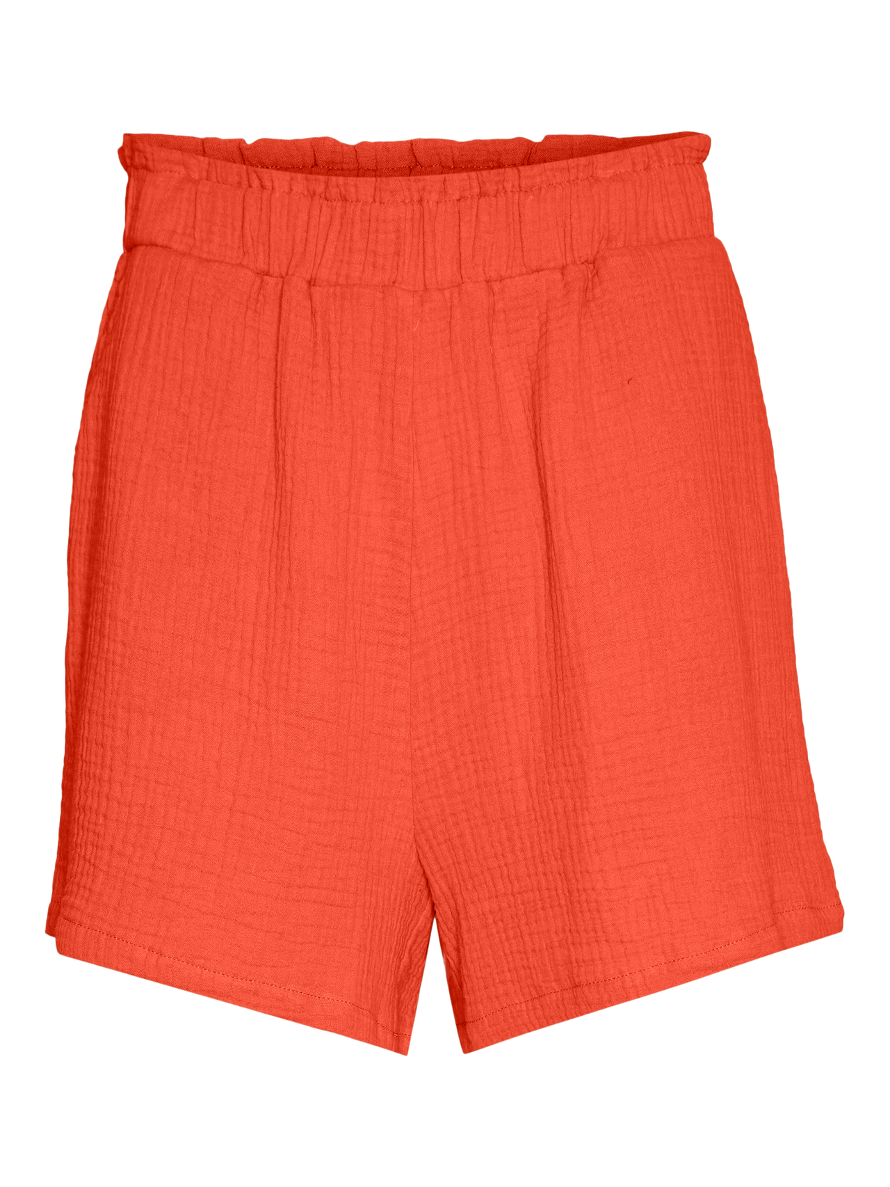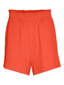 Shorts with slit pockets, an elastic waist, and a high waist. Style the shorts with a t-shirt and sneakers, for a simple look when it is hot and sunny outside.