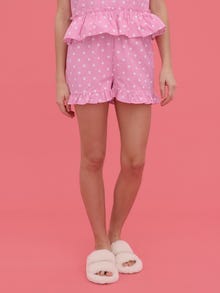 Nightwear shorts with an elastic waist and frill detail at the leg opening. Style these cute shorts with the matching top and add an oversized blazer and a pair of heels for a night out.