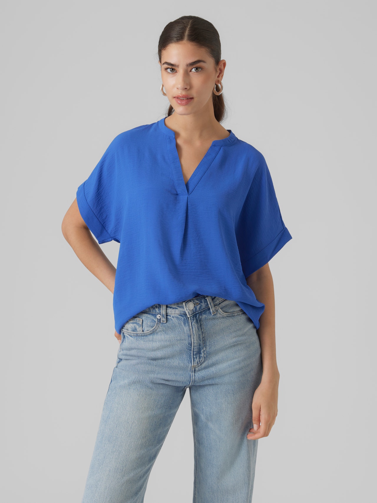 Basics are inevitable to find in almost every wardrobe out there. Our basic tops help bind an outfit together and this top makes no exception. Wear it with a shacket on top, a pair of relaxed mom-jeans, and chunky boots and you get a relaxed and cool everyday look.