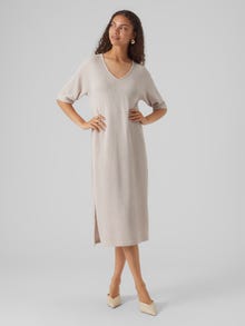 Comfortability has no limits in a knitted dress. With this style you get a classic wardrobe must-have for the colder days. Style it with a pair of tights and long, chunky boots for a modern everyday look. Simply add a few cool accessories, and you easily transform it into an occasion-look. - Product Type : Knitted dress - Neck : V-Neck - Sleeve : Sleeveless - Sleeves : Dropped shoulders - Length/Size : Maxi length - Extra details : Side slits - Fit : Loose Fit