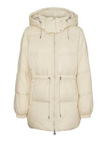 - Product Type : Puffer jacket - Neck : Hood with string regulation - Sleeve : Long sleeves - Cuffs : Elasticated cuffs - Closing : 2-way zip fastening - Pockets : Front pockets - Lining : Polyester lining for a comfortable feel - Padding : Responsibly-sourced down and feather padding for a light feel and warmth - Extra details : Drawstring at waist