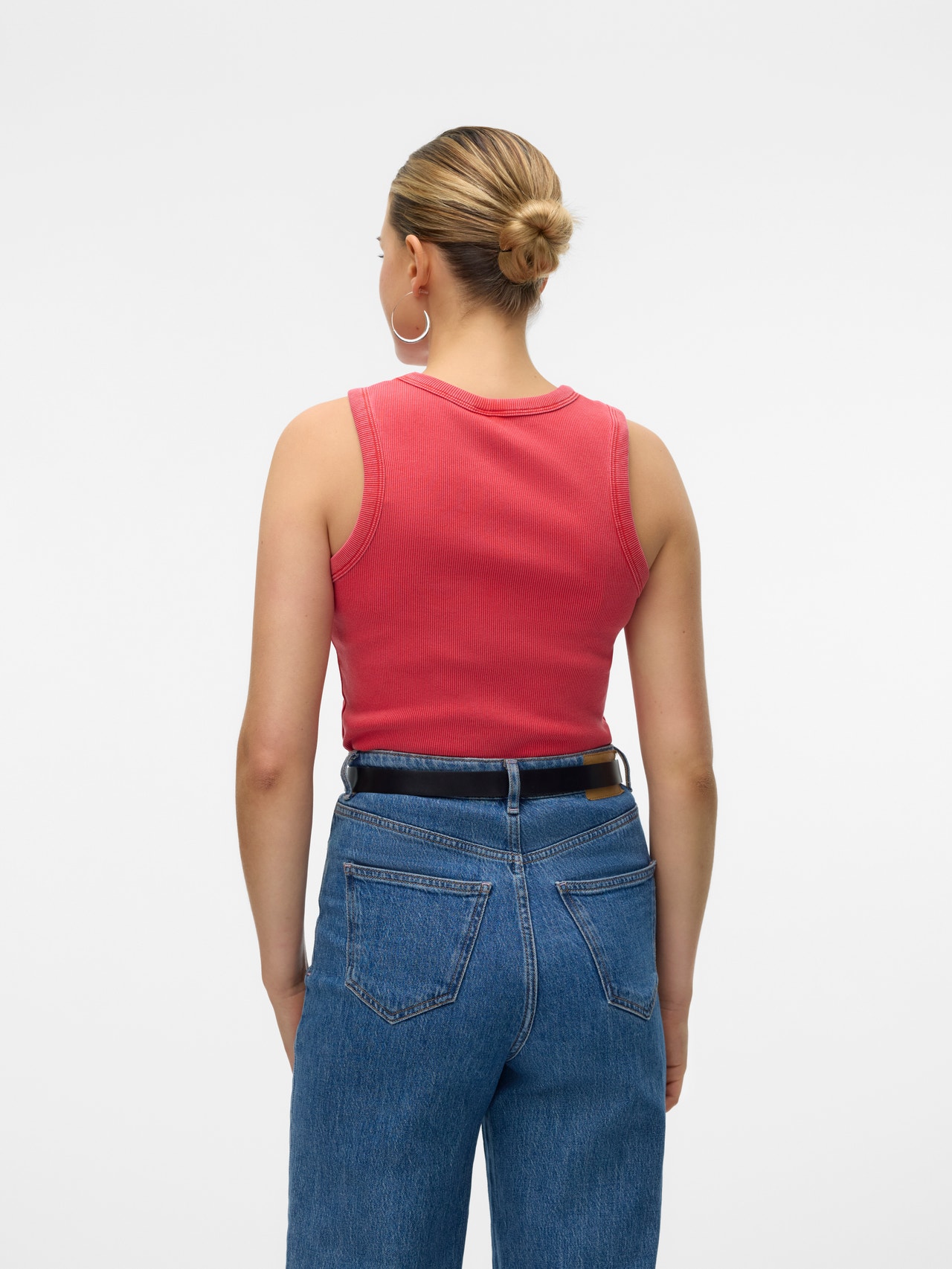 Looking for your new everyday favourite top? We got an idea. This top will easily become your new go-to on days where you are not in the mood for something wild, but still want to look on-trend. Add some jewellery for that extra bit of sparkle or keep it simple with a light jacket. - Product Type : Top - Neck : V-Neck - Sleeve : Sleeveless - Straps : Racerback - Length/Size : This product is true to size - Wash/Finish : Acid washed for a heavily bleached look and softer surface - Fit : Slim Fit