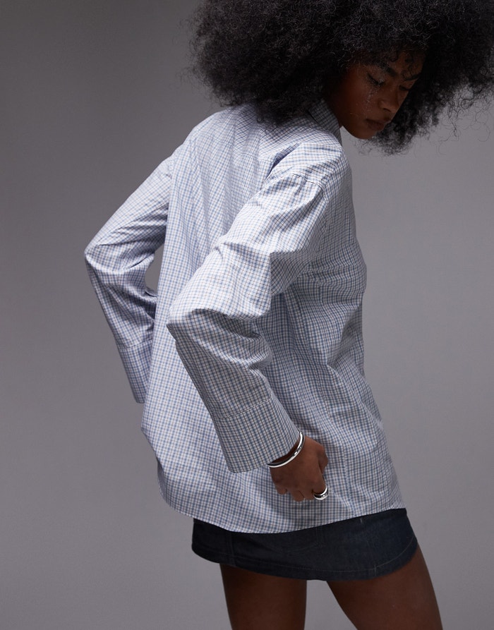 Topshop oversized shirt in blue micro check - LBLUE