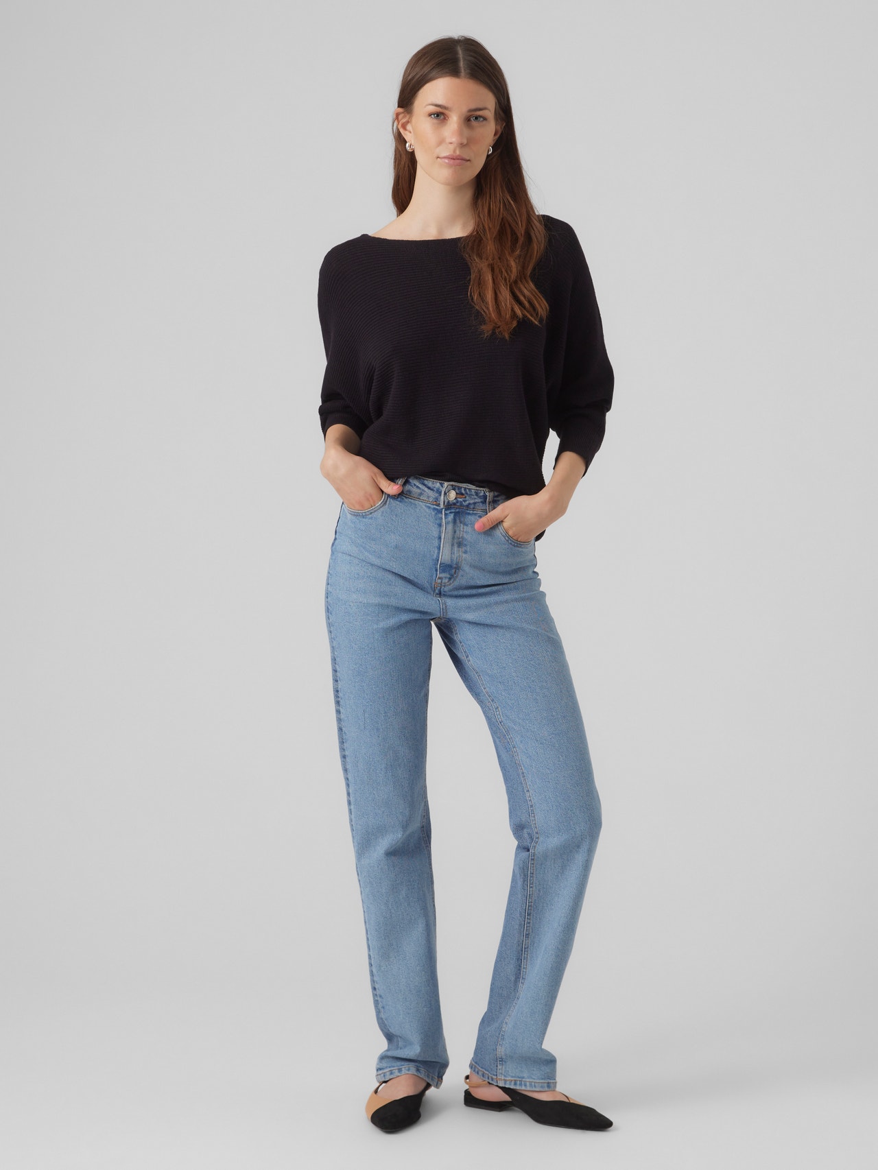 Todo el mundo debería tener un jersey favorito, y este podría ser tu nuevo aliado para cualquier ocasión. Con él, no solo mantendrás el frío a raya, sino que también irás a la última sin renunciar a la comodidad. ¡Sin duda, la prenda perfecta!. - Artículo : Jersey de punto - Cuello : Cuello barco - Manga : Mangas 3/4 - Mangas : Hombros caídos