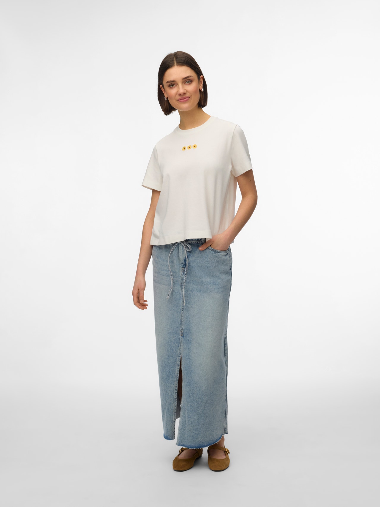 En caso de duda, ¡ponte una camiseta! Nunca puedes equivocarte con una camiseta, una opción perfecta para un look fresco y atemporal. Usa esta camiseta con unos bonitos jeans boyfriend y agrega un par de zapatillas gruesas para un look urbano de ciudad.