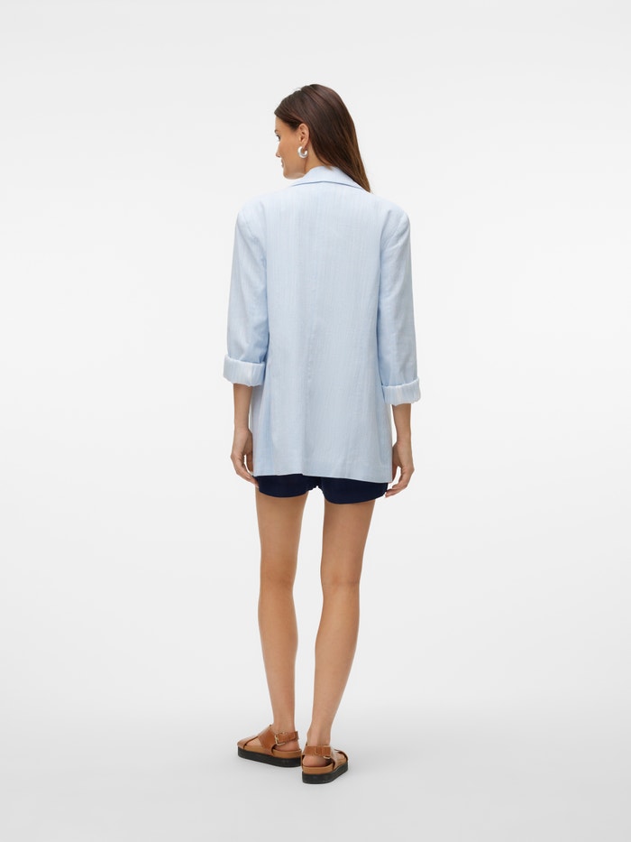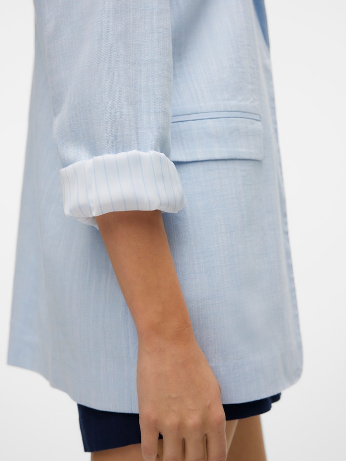 ¿No sabes qué ponerte? Entonces, apuesta por un blazer. Este modelo es ideal para el día a día. Con este blazer siempre conseguirás un look sofisticado y elegante, sin importar si lo combinas con un top o con una camiseta básica. Combínalo con unos vaqueros de corte ancho y unos zapatos de tacón para conseguir un look muy chic para el día a día..