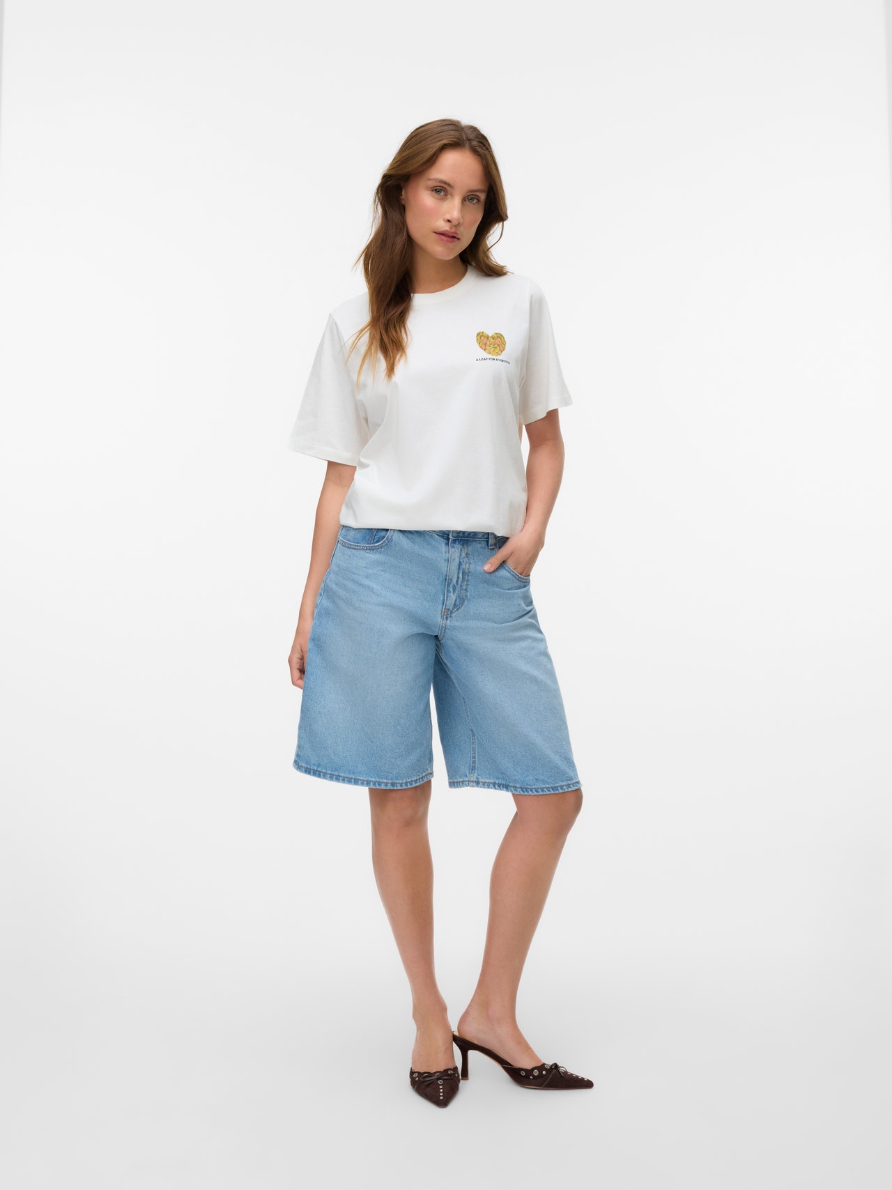 En caso de duda, ¡ponte una camiseta! Nunca puedes equivocarte con una camiseta, una opción perfecta para un look fresco y atemporal. Usa esta camiseta con unos bonitos jeans boyfriend y agrega un par de zapatillas gruesas para un look urbano de ciudad.