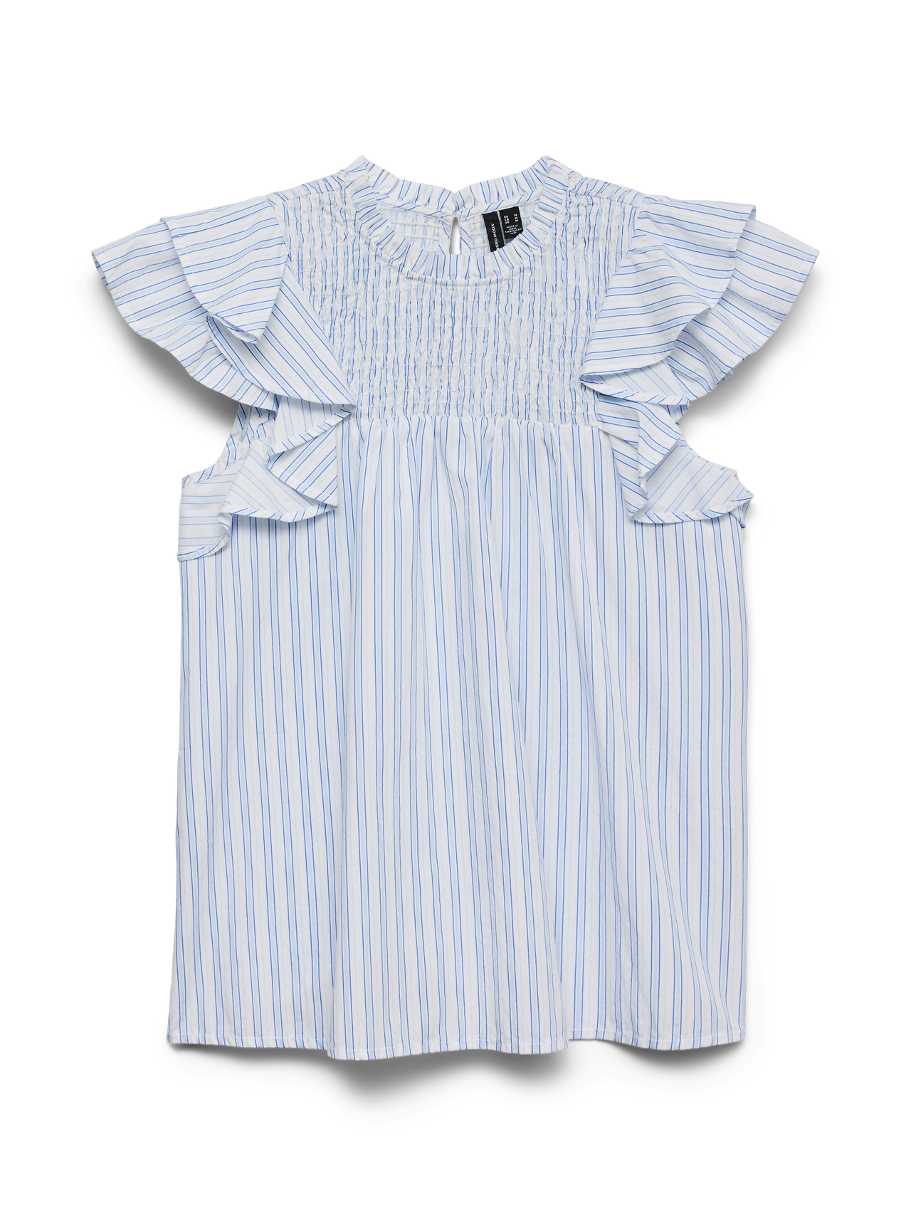 ¿Buscas tu nuevo top favorito para el día a día? Tenemos algo en mente. Este top se convertirá fácilmente en tu nueva prenda favorita esos días en los que no te apetece un look muy desenfadado, pero quieres ir a la última. Combínalo con algo de bisutería original para conseguir un look más sofisticado, o apuesta por una chaqueta ligera para lograr un conjunto más sobrio.. - Artículo : Top - Cuello : Cuello alto - Manga : Sin mangas - Cierre : Cierre con botón y bucle - Detalles : Volantes con volumen - Corte : Corte regular