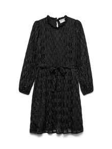 Cada fiesta merece el vestido de fiesta adecuado. Y con este vestido tan espectacular tendrás ganas de fiesta en cualquier momento. Combínalo con un par de zapatos de tacón y tus accesorios favoritos para conseguir un look de fiesta de lo más espectacular.. - Artículo : Vestido de noche - Cuello : Cuello alto - Manga : Manga larga - Mangas : Mangas voluminosas - Puños : Puños con ribetes elásticos - Cierre : Cierre de cinturón, Cierre de botones - Largo/talla : Corto - Detalles : Con cinturón a nivel de la cintura - Corte : Corte regular