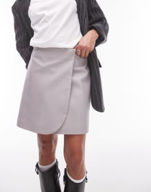 Topshop faux leather wrap mini skirt in dove grey - GREY