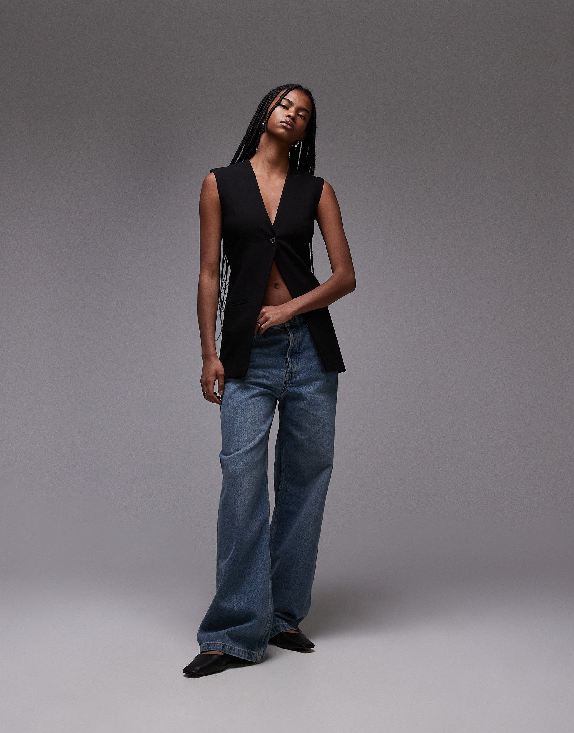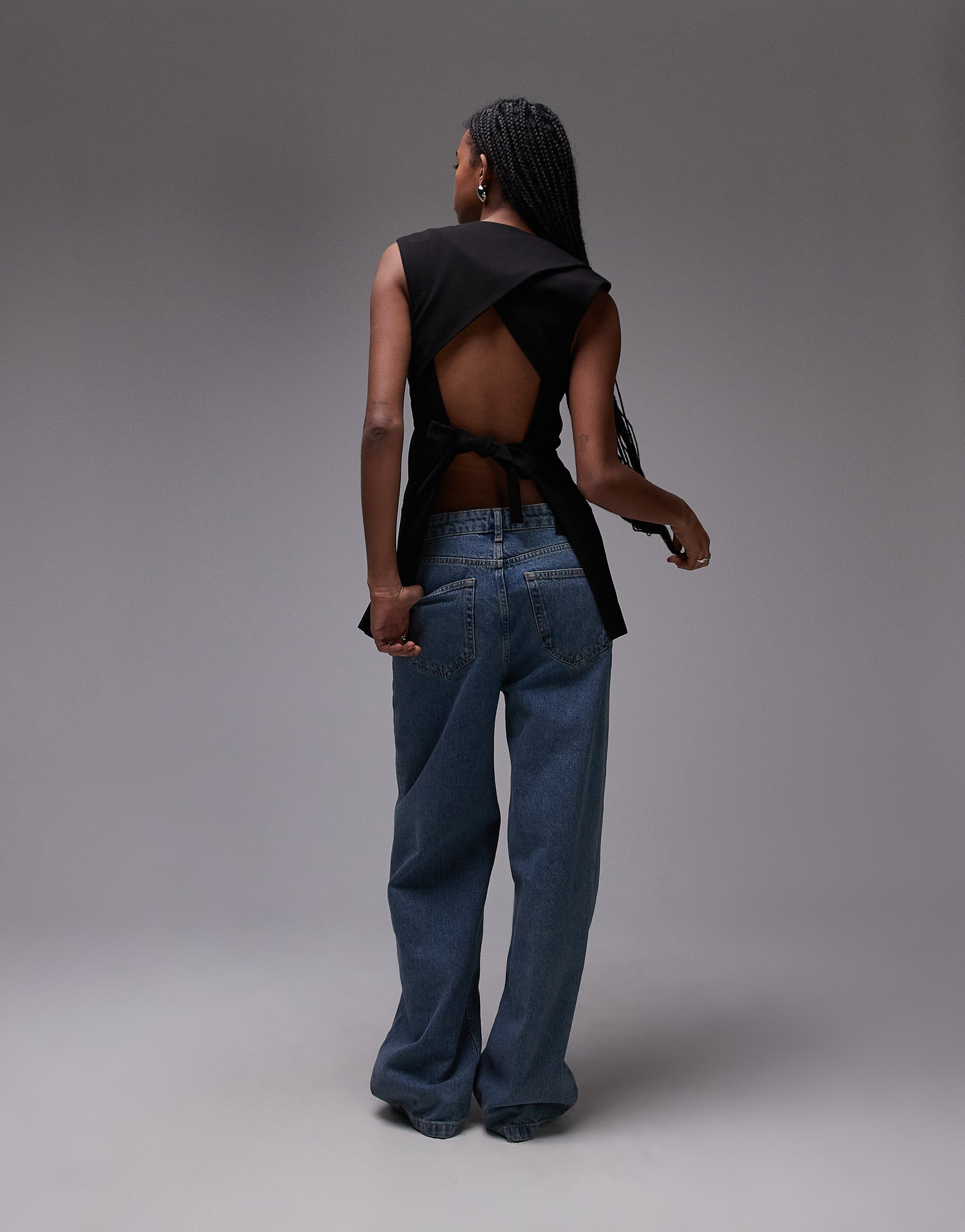 Topshop sleeveless backless blazer in black - BLACK