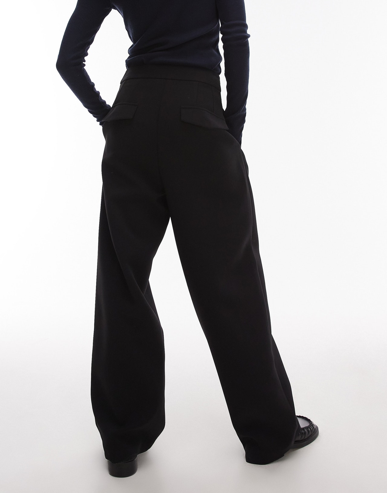Topshop co ord slouchy clean waist band tailored trouser in black BLACK - BLACK