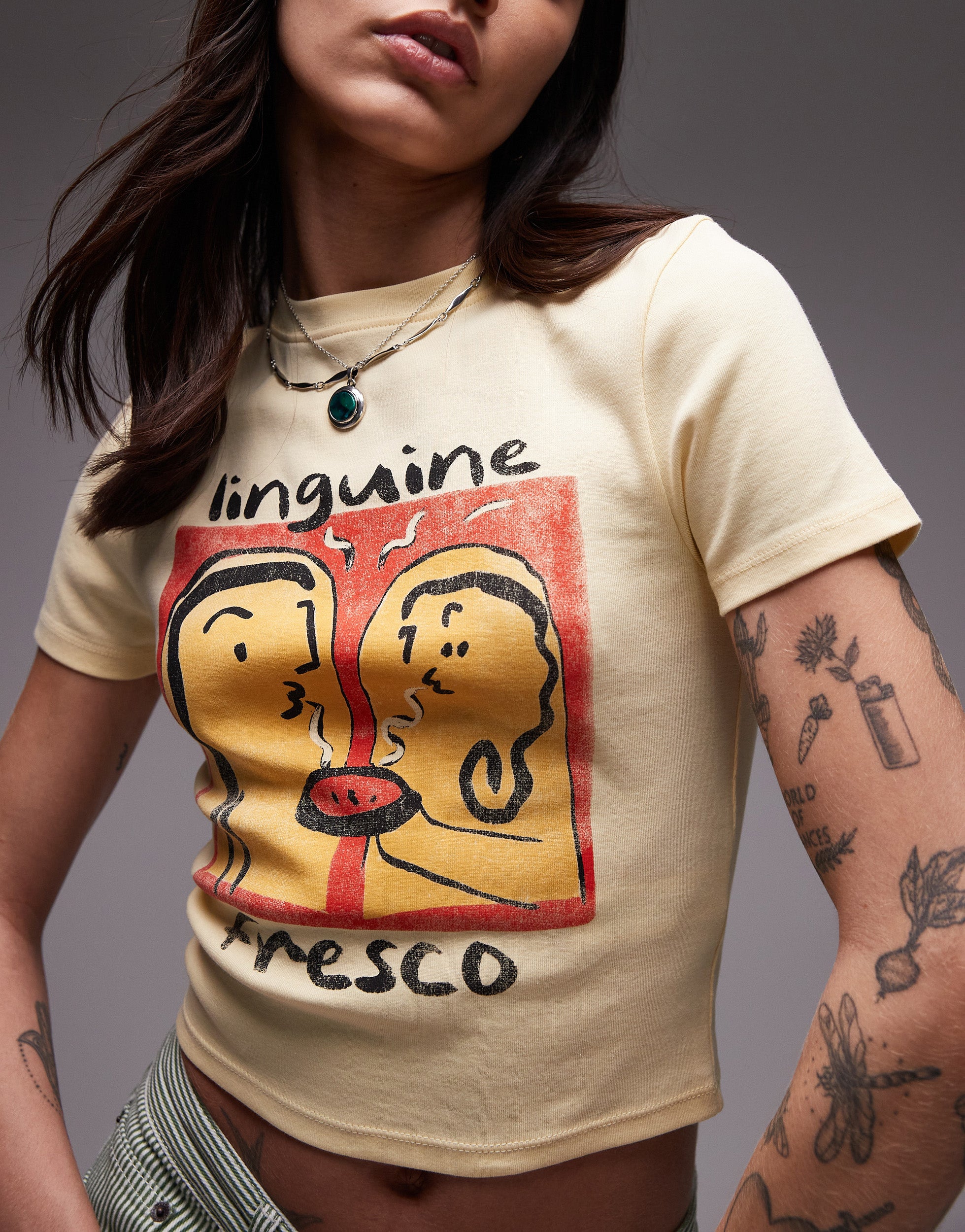 Topshop graphic linguine baby tee in buttermilk - YELLOW