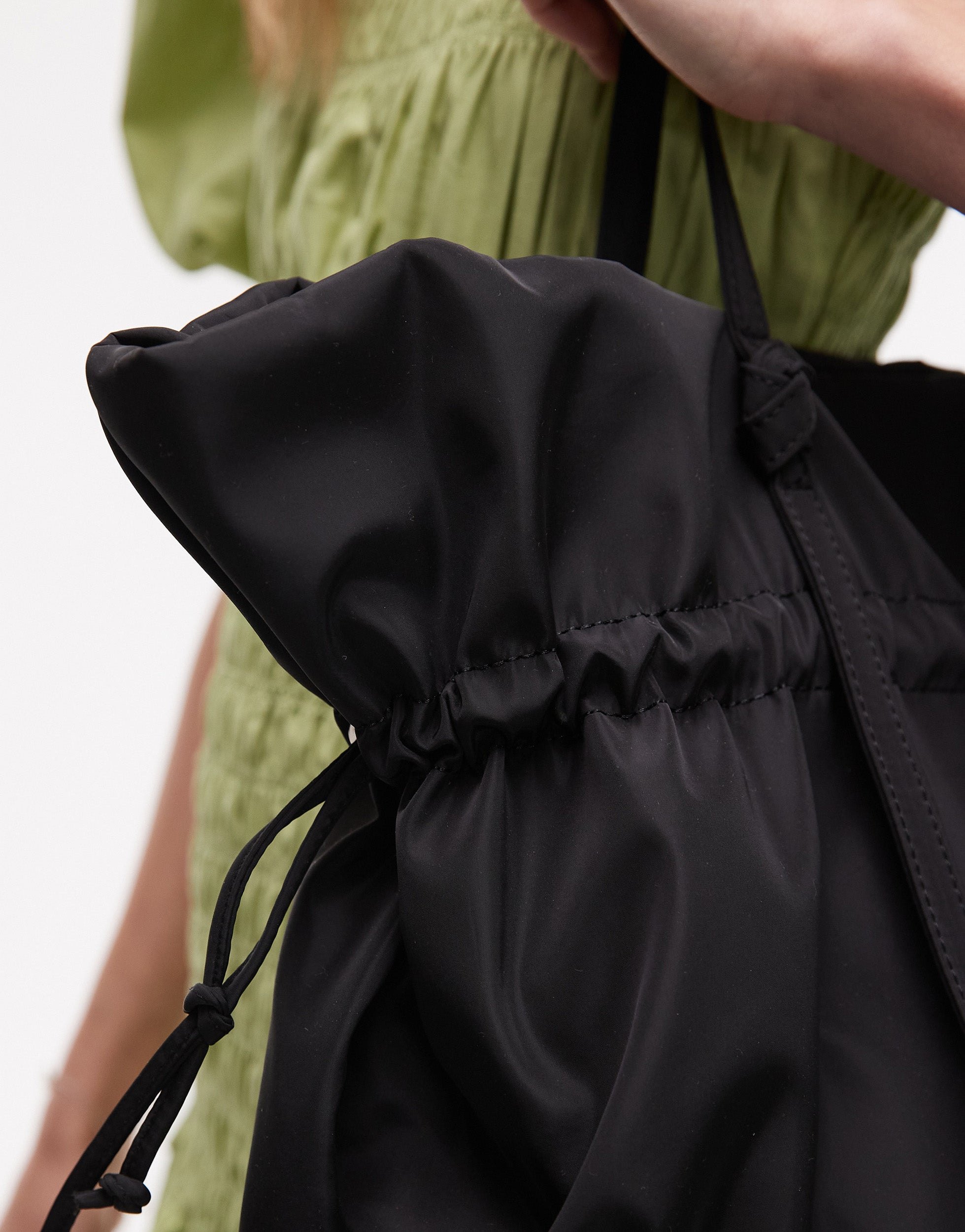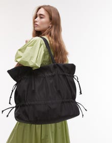 Topshop Tino nylon ruched tote bag in black - BLACK