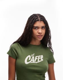 Topshop raised graphic il caffe baby tee in green - MGREEN
