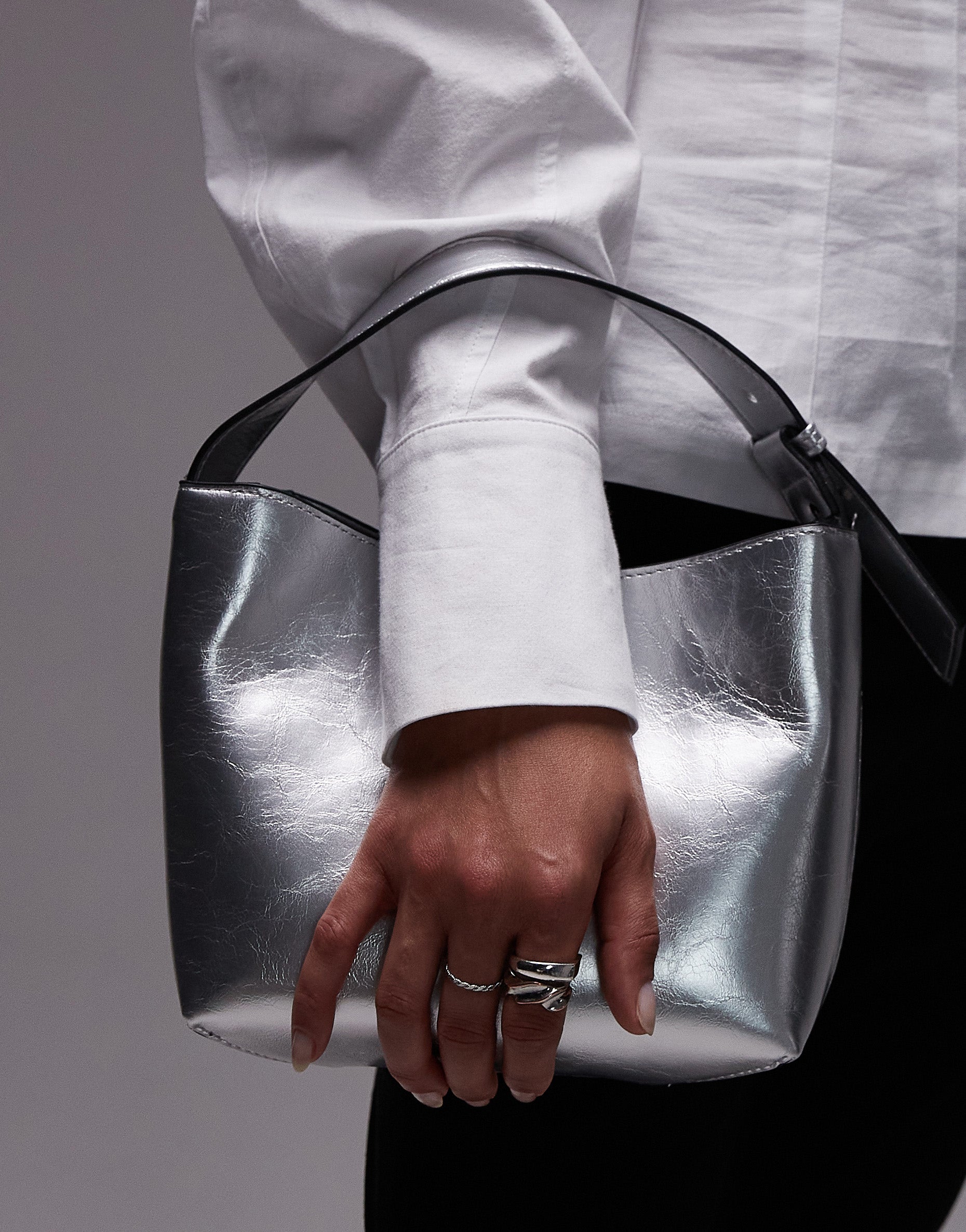 Topshop Gabby box grab bag in silver - SILVER