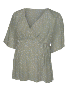 Dale la bienvenida a la temporada de los comienzos nuevos con las prendas primaverales 2 en 1 más suaves y originales, ideales tanto para el embarazo como para la lactancia.. - Artículo : Blusa - Cuello : Cuello en V - Manga : Mangas 2/4 - Mangas : Mangas anchas - Detalles : Dobladillo curvado, Línea de corte por encima del vientre, Abertura de lactancia con un diseño cruzado - Estampado : Estampado que se repite en toda la superficie del artículo - Corte : Corte regular