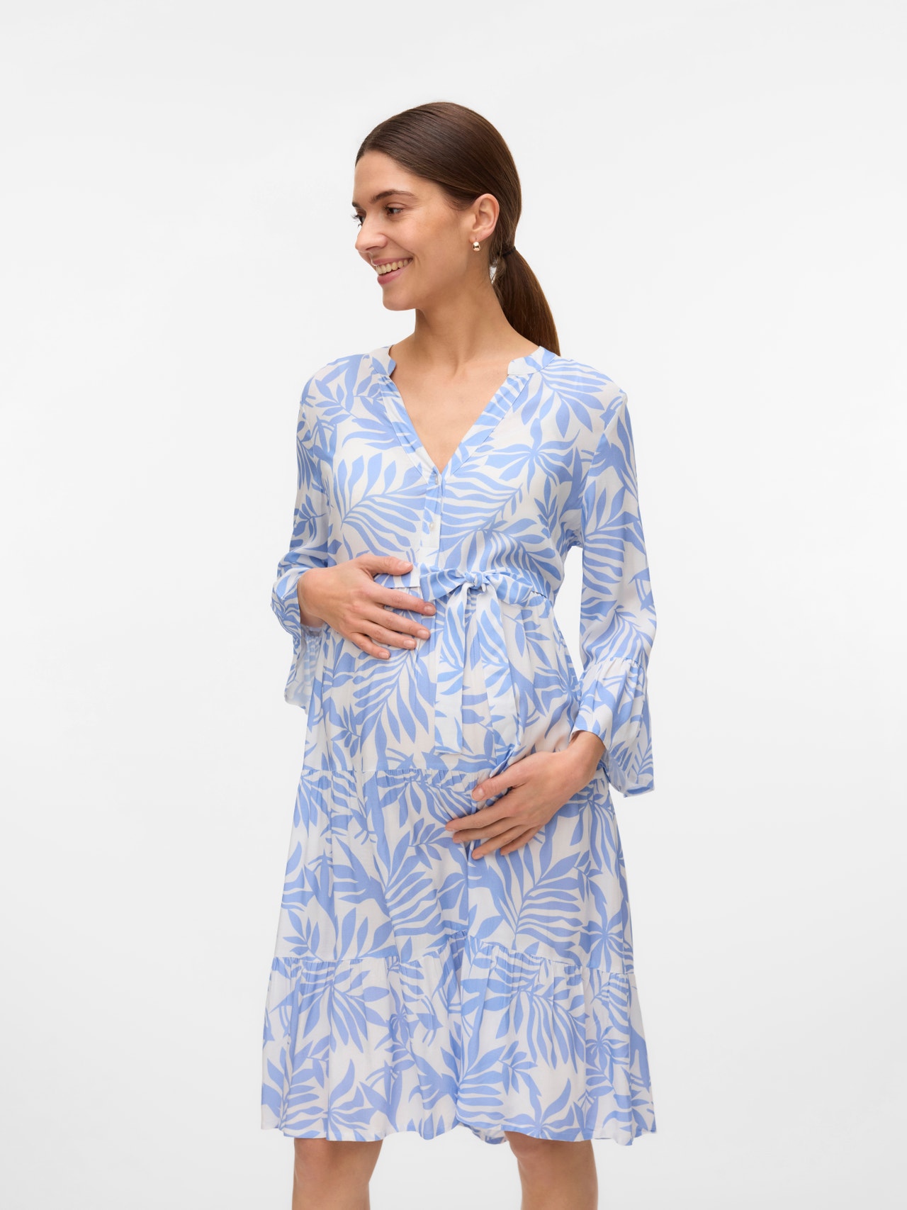 - Detalles : Con cinturón a nivel de la cintura, Dobladillo curvado, Línea de corte por encima del vientre, Pinzas, Volantes con volumen, Abertura de lactancia con cierre de botón o cremallera
