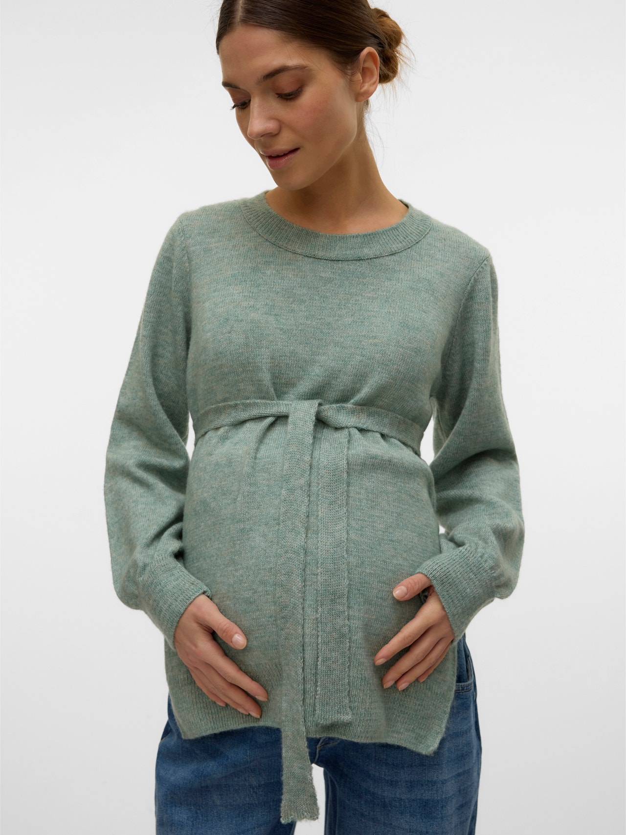 Crea looks superpuestos y elegantes con prendas de punto suaves que te protejan del frío a ti y a tu embarazo durante todo el año..
