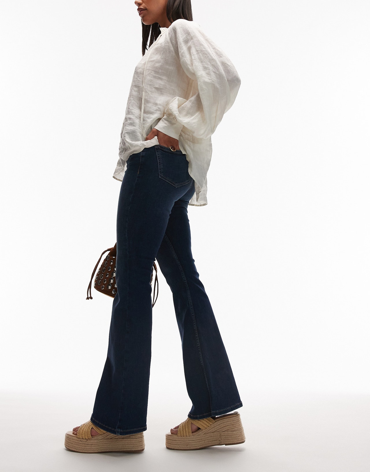 Dale la bienvenida a tu nuevo denim llamativo. Estos vaqueros acampanados de TOPSHOP canalizan un toque vintage con un toque moderno, diseñados para alargar las piernas y elevar tu look diario. Con una cintura alta, un ajuste favorecedor y un atrevido vuelo desde la rodilla hacia abajo, logran el equilibrio perfecto entre lo retro cool y lo contemporáneo chic. Combínalo con un punto corto, un body elegante o un blazer estructurado: estos jeans hablan por sí solos.
