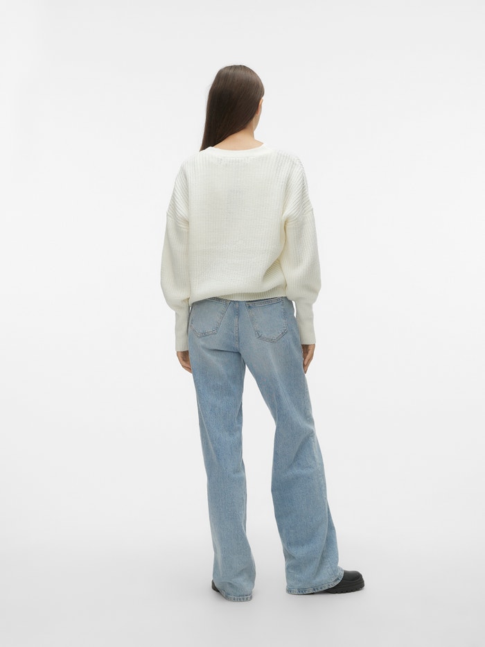 V-kaelus Kõrged mansetid Balloonvarrukad Kootud kardigan