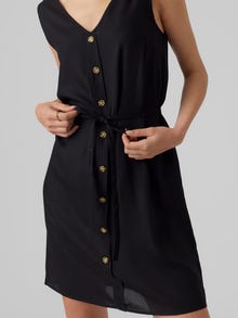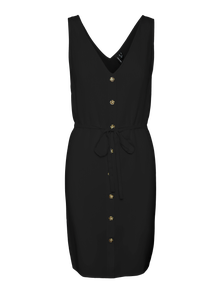 See kleit on ideaalne valik päevadel, mil riietuse sobitamine tundub võimatu. Mugavuse ja stiili ühendamine teeb kleidist igapäevaseks kasutuseks ideaalse riideeseme. Muuda see olenevalt eelistusest uhkemaks või vaoshoitumaks. - Toote tüüp : Kleit - Kaelaosa : V-kaelus - Varrukas : Varrukateta - Pikkus/suurus : Lühike - Täiendav info : Vöö pihaosas, Nööpdetail - Lõige : Tavapärane lõige