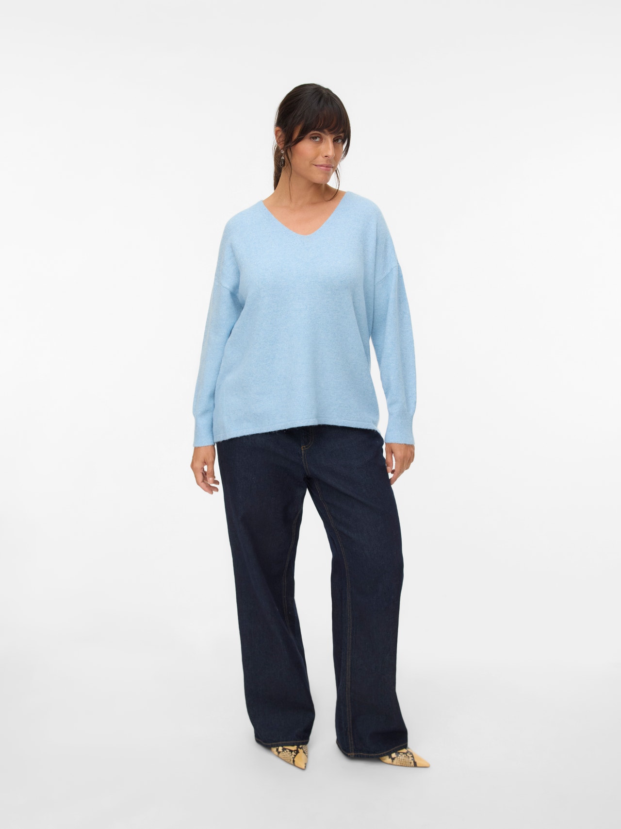 Ükski garderoob pole kunagi täielik ilma sinu lemmikdžemprita, mis võib olla sinu uus ülemine kiht. Ideaalne viis sooja ja stiilsena püsimiseks, ilma et teeksid mugavuse osas järeleandmisi. Üdini täiuslik!. Kurvikate stiilid on loodud sobima kurvikate naiste kehadele. - Toote tüüp : Kootud pullover - Kaelaosa : V-kaelus - Varrukas : Pikad varrukad - Mansetid : Soonikuga mansetid - Lõige : Tavapärane lõige