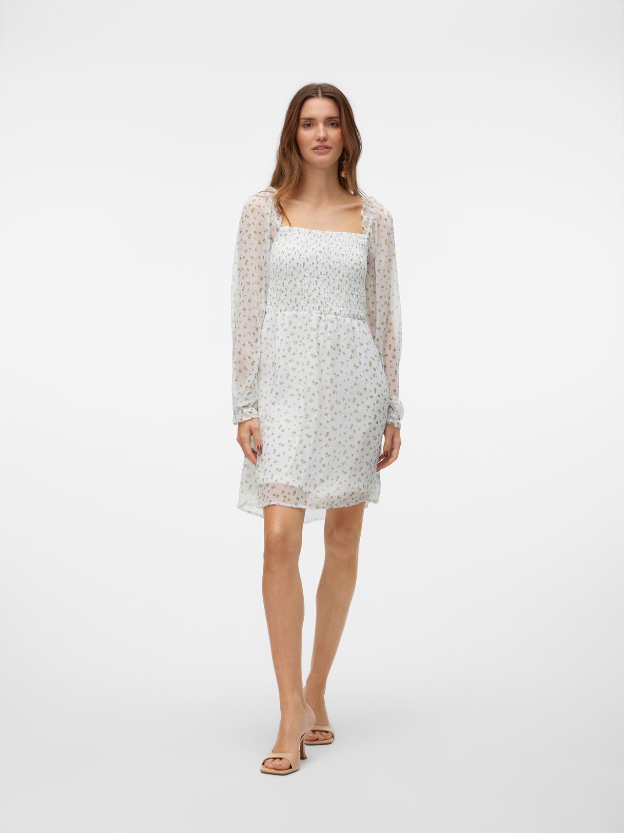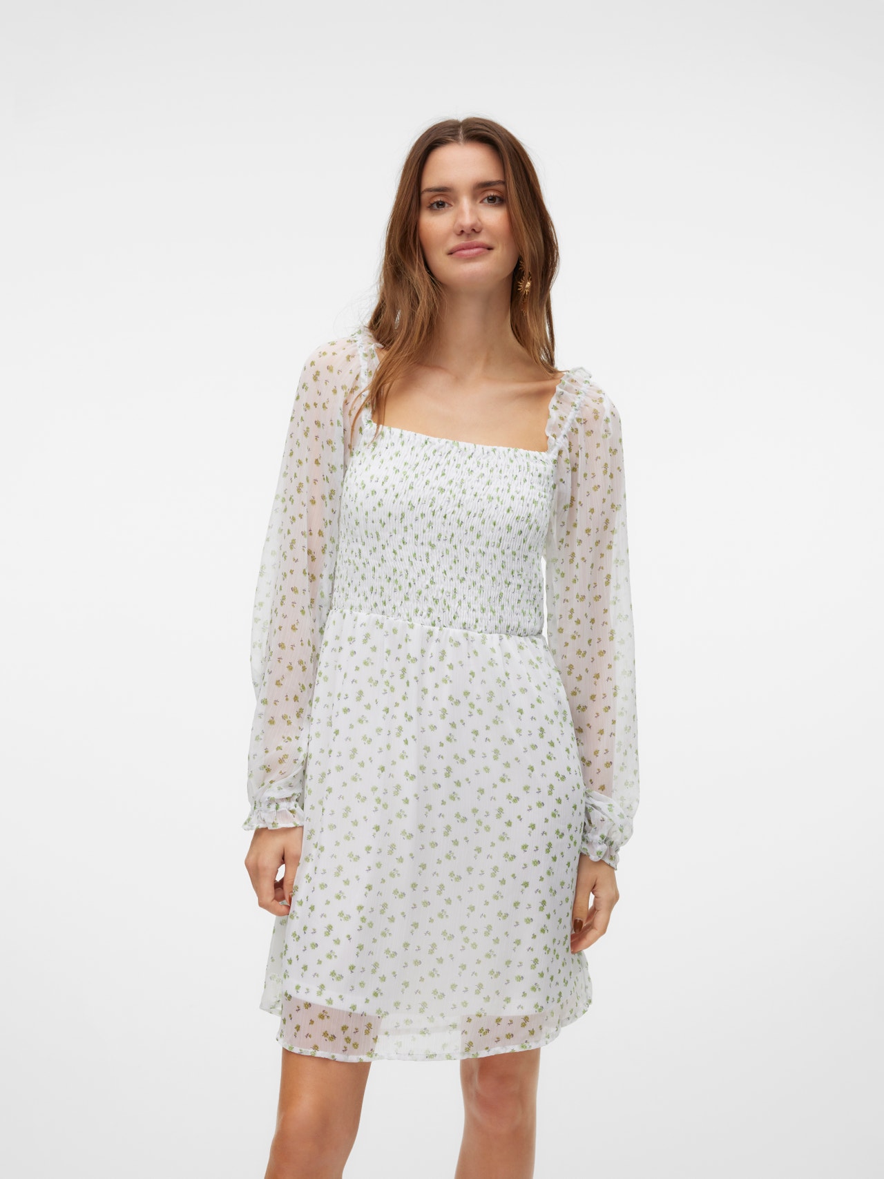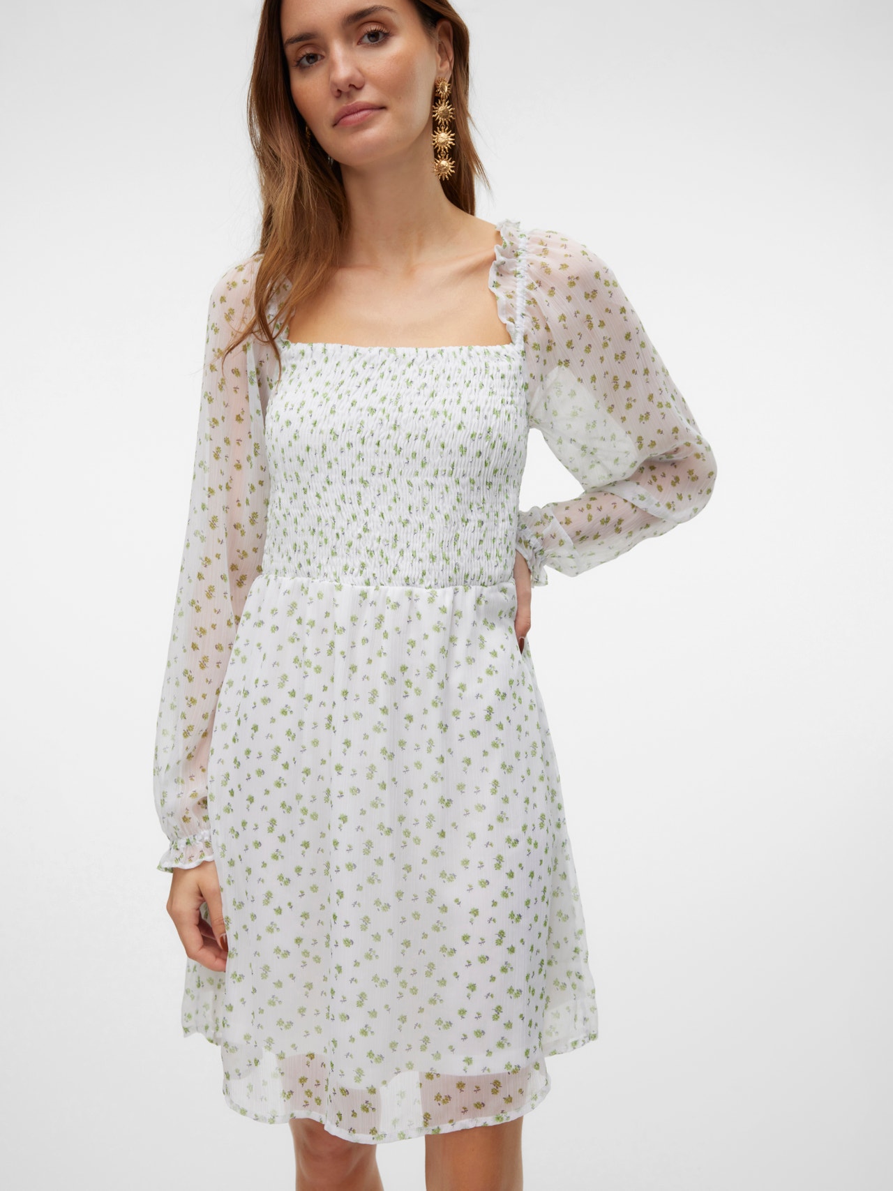 Lillemustrid lisavad sinu ilmele piisavalt naiselikkust, mis teeb lillemustriga kleidist ideaalse täienduse sinu suvisele garderoobile. Kui välimus tundub liiga armsaks, lisa vaid paar lahedaid tenniseid, et seda veidi vaoshoitumaks muta. Lisa kindlasti ka lemmikaksessuaare!. - Toote tüüp : Kleit - Kaelaosa : Neljakandiline kaelus - Varrukas : Pikad varrukad - Varrukad : Volüümikad varrukad - Mansetid : Venivad mansetid - Pikkus/suurus : Lühike - Täiendav info : Veniv vöökoht, Rüüsid - Lõige : Tavapärane lõige