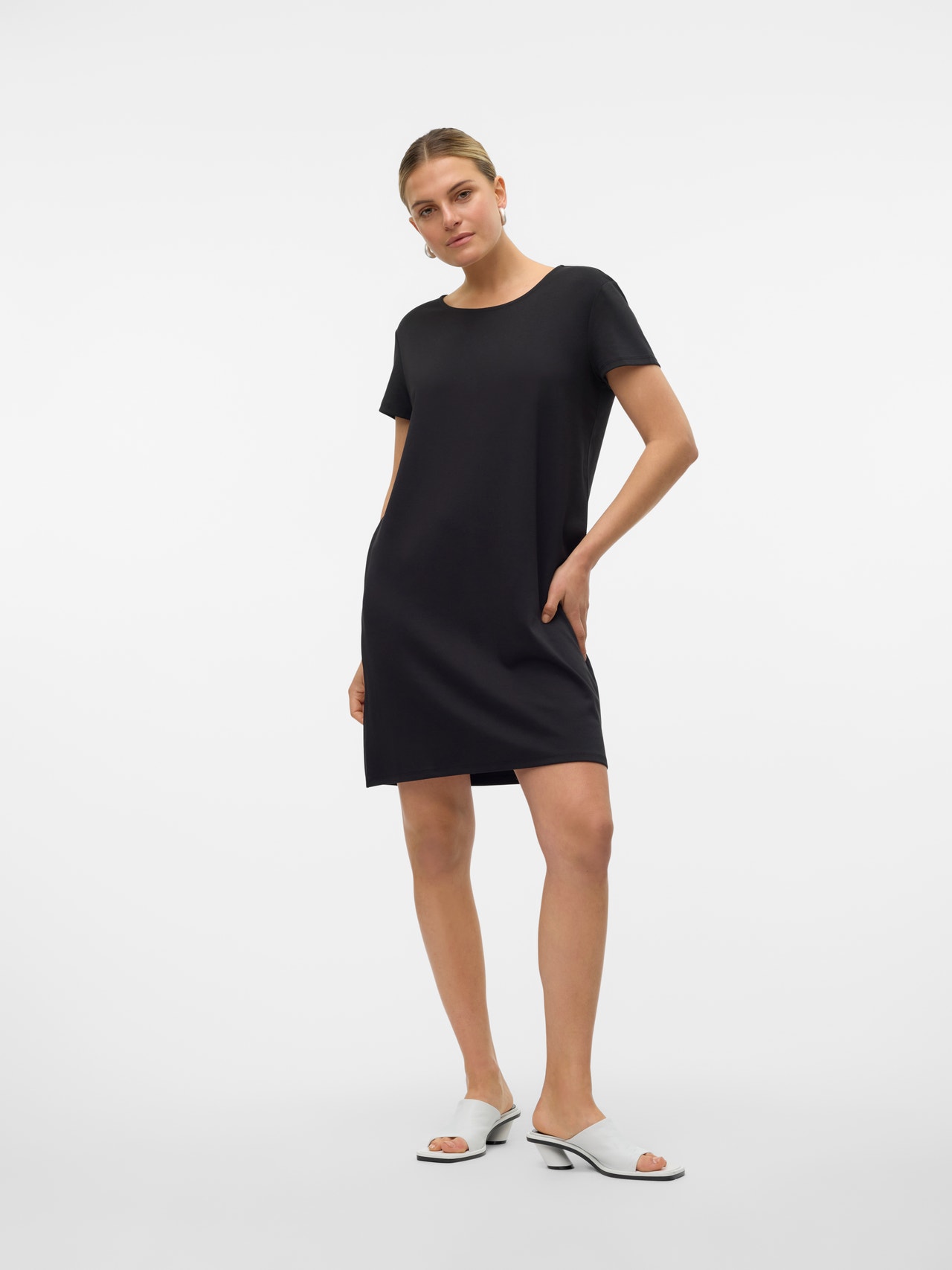 See kleit on ideaalne valik päevadel, mil riietuse sobitamine tundub võimatu. Mugavuse ja stiili ühendamine teeb kleidist igapäevaseks kasutuseks ideaalse riideeseme. Muuda see olenevalt eelistusest uhkemaks või vaoshoitumaks. - Toote tüüp : Kleit - Kaelaosa : Ümmargune kaelus - Varrukas : Lühikesed varrukad - Lõppsõna : Tõmblukk - Pikkus/suurus : Lühike - Vooder : Polüestervooder annab läbipaistmatu ilme - Lõige : Tavapärane lõige