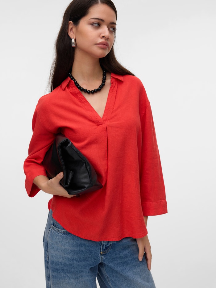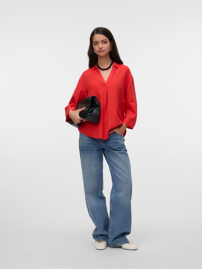 Ruumikas lõige Särgikrae Üles volditud mansetid Laiad varrukad Top