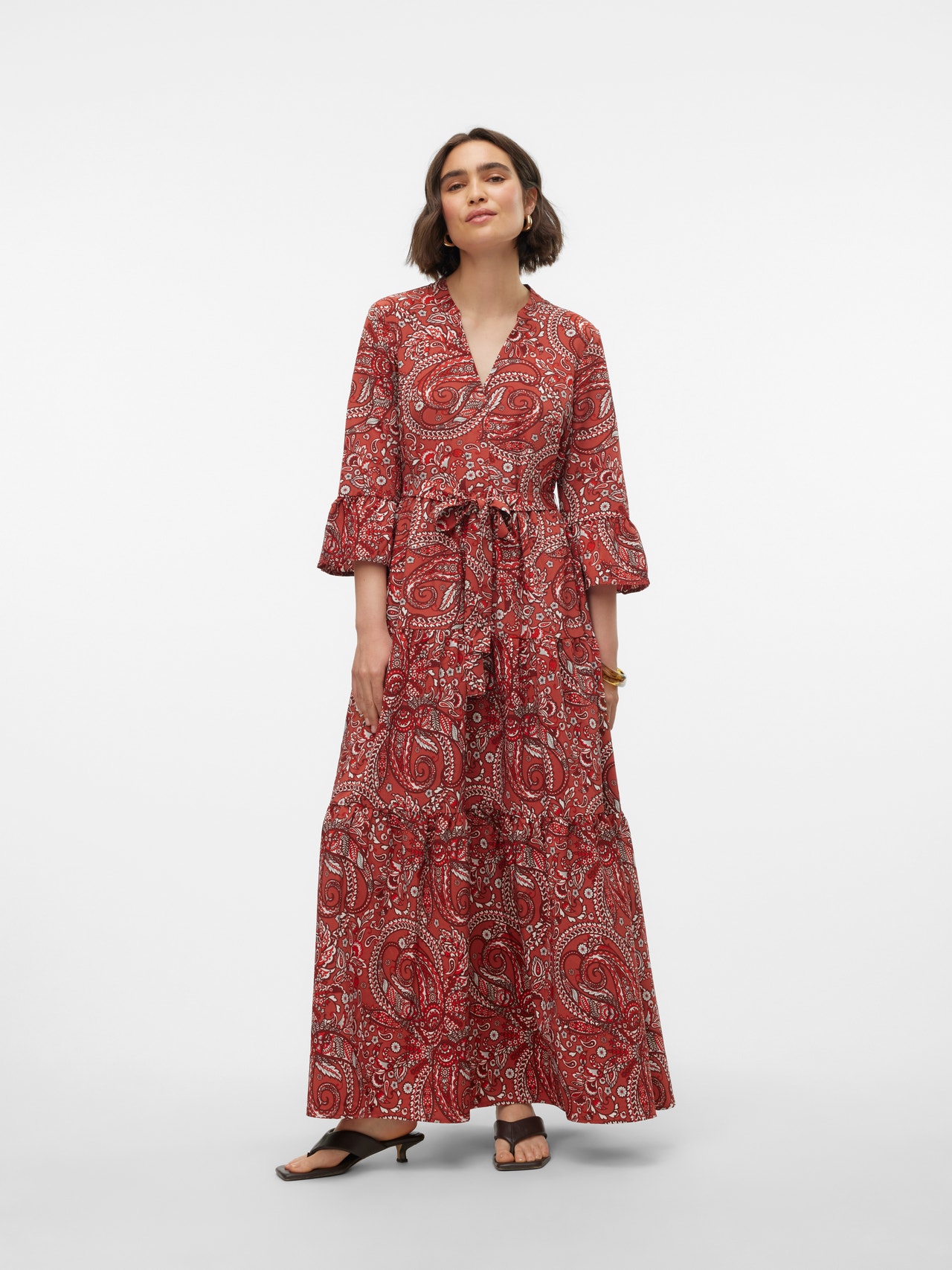 Tavapärane lõige V-kaelus Laiad varrukad Pikk kleit