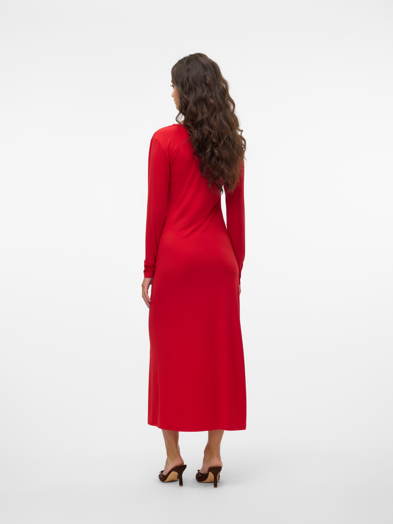 Tihedalt liibuv lõige V-kaelus Venivad mansetid Pikk kleit