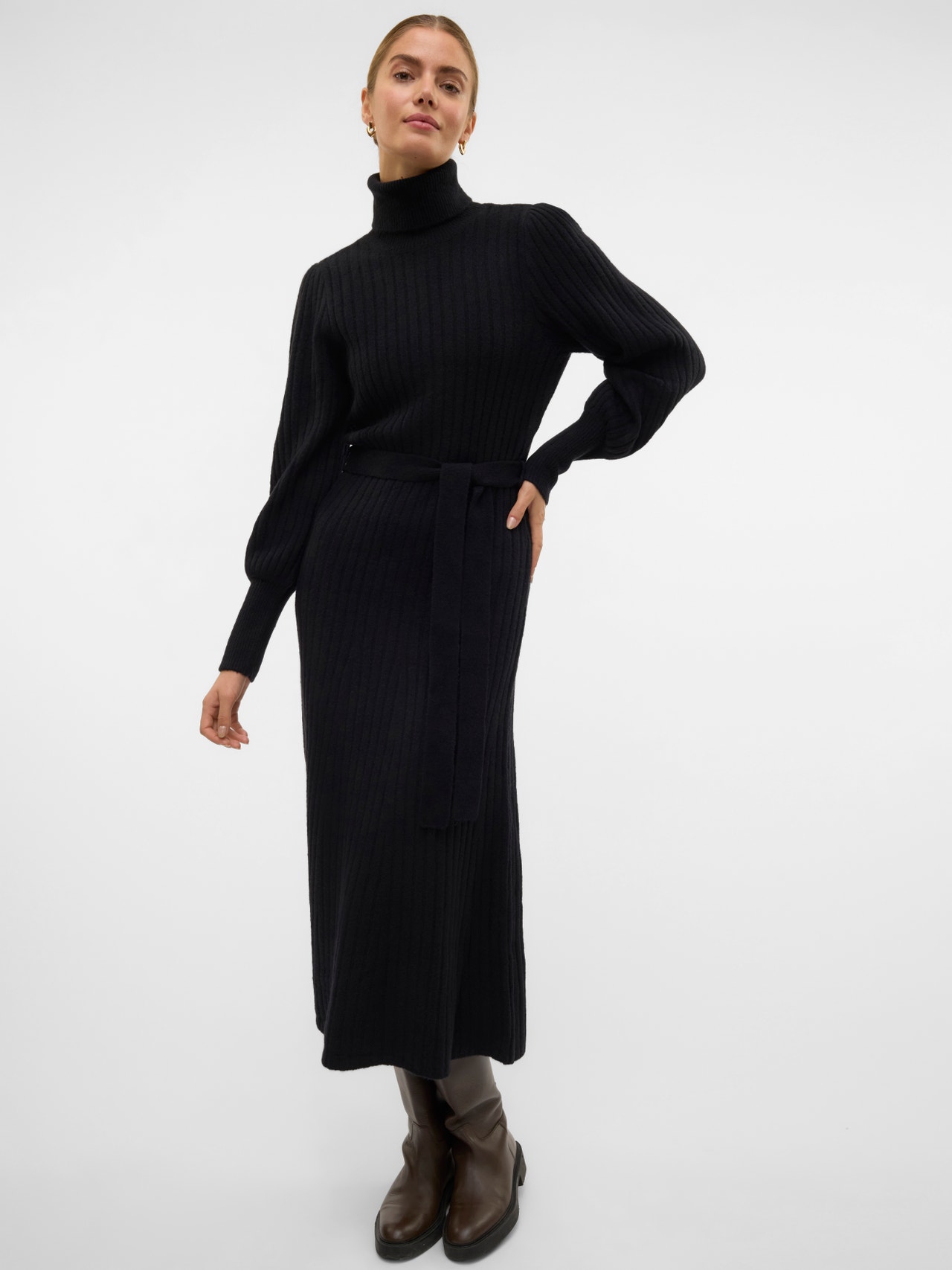 Tavapärane lõige Rullkaelus Kõrged mansetid Volüümikad varrukad Pikk kleit