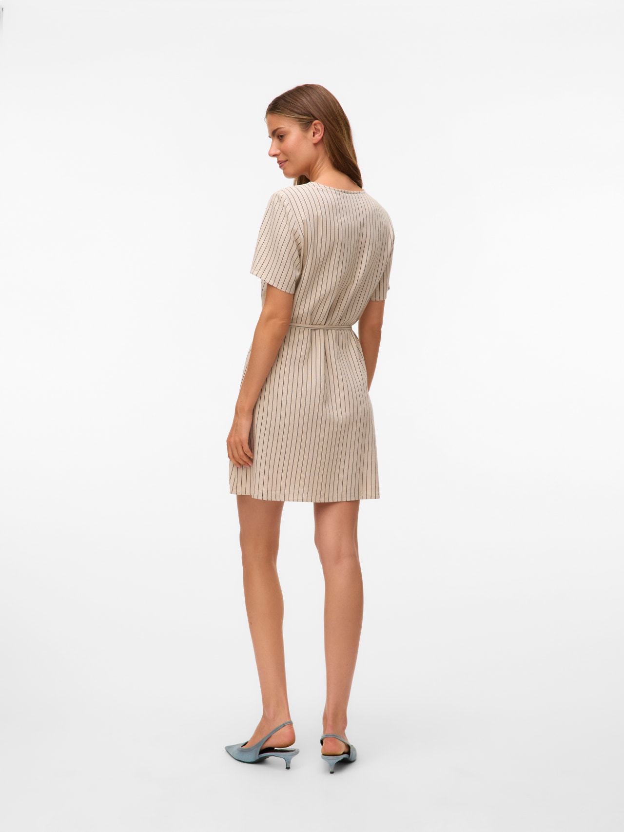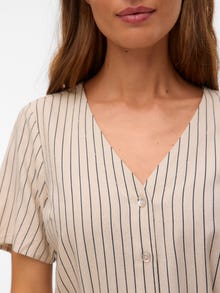 - Toote tüüp : Kleit - Kaelaosa : V-kaelus - Varrukas : Lühikesed varrukad - Täiendav info : Kohandatav vöökoht - Trükis : Trükk kordub kogu toote pinnal - Lõige : Ruumikas lõige