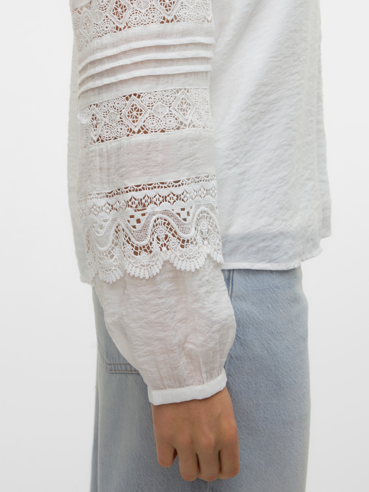 Põhiesemeid leiab paratamatult peaaegu igast garderoobist. Meie põhitopid aitavad riideid kokku sobitada ja see topp pole ka mingi erand. Kanna seda särkjaki, lõõgastunud ema lõikega teksade ja paksude saabastega ning saad avara ja laheda igapäevailme. - Toote tüüp : Pluus - Kaelaosa : V-kaelus - Varrukas : Pikad varrukad - Varrukad : Volüümikad varrukad - Täiendav info : Pitsdetail - Lõige : Tavapärane lõige