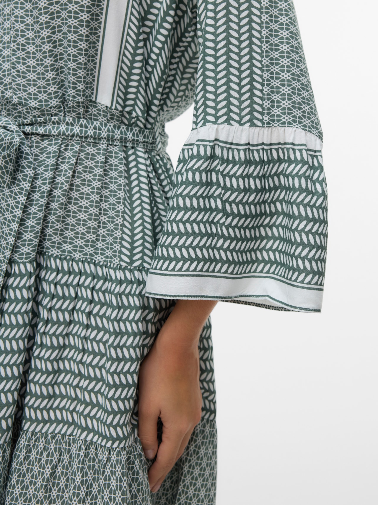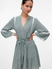 See kleit on ideaalne valik päevadel, mil riietuse sobitamine tundub võimatu. Mugavuse ja stiili ühendamine teeb kleidist igapäevaseks kasutuseks ideaalse riideeseme. Muuda see olenevalt eelistusest uhkemaks või vaoshoitumaks. - Toote tüüp : Kleit - Kaelaosa : V-kaelus - Varrukas : 3/4-varrukad - Varrukad : Laiad varrukad - Lõppsõna : Vöökinnitus - Pikkus/suurus : Lühike - Lõige : Ruumikas lõige