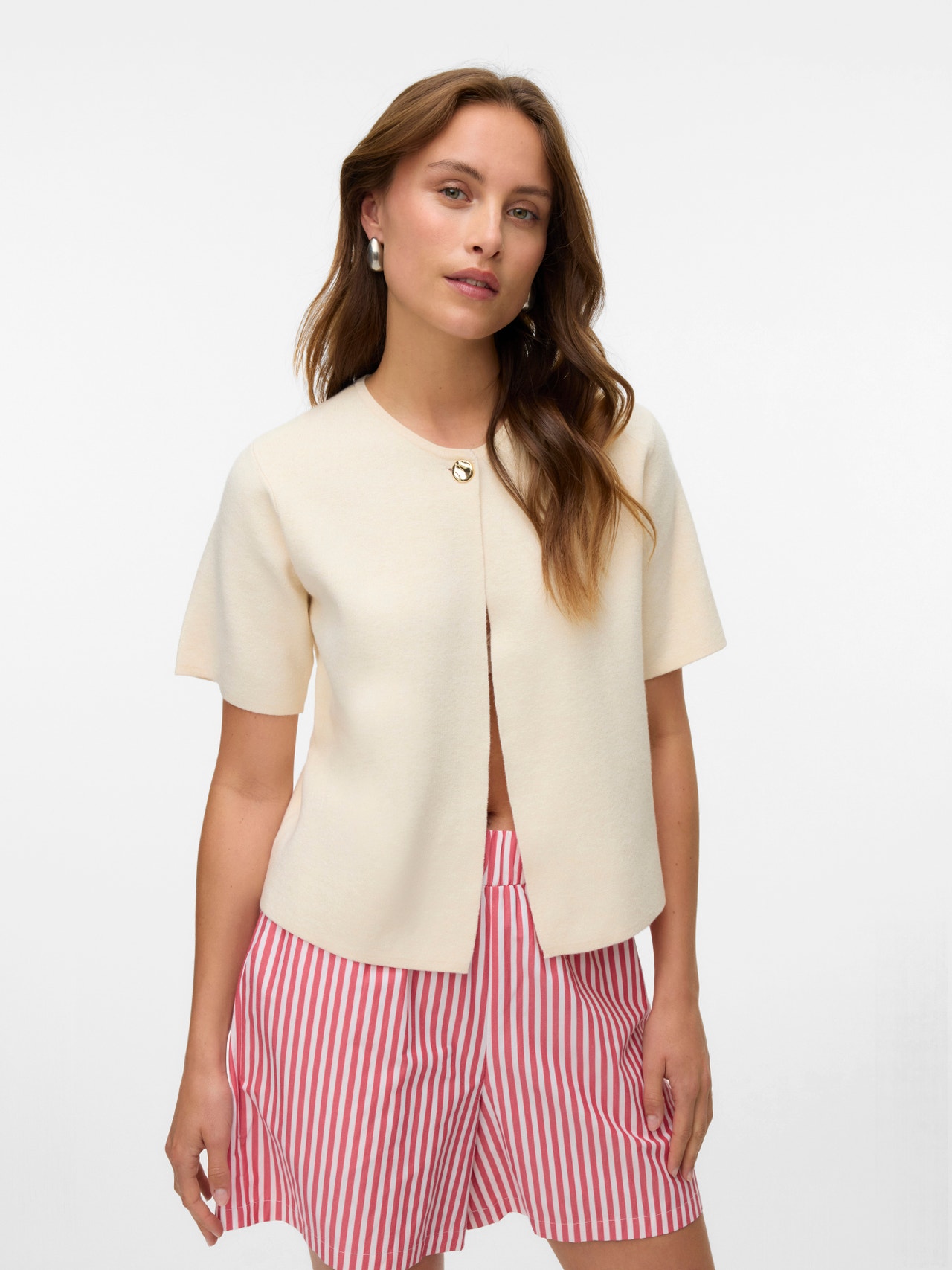 Lisakiht, mis muudab su ilme vaevata kenamaks. See kerge kardigan sobib kihtidena kandmiseks või lihtsalt silma paistmiseks. Kanna seda teksapükstega igapäevase komplekti loomiseks või seeliku ja saabastega päevadel, mil soovid uhkemalt riietuda. - Toote tüüp : Kardigan - Kaelaosa : Ümmargune kaelus - Varrukas : Lühikesed varrukad - Lõppsõna : Nööpkinnitus - Lõige : Tavapärane lõige