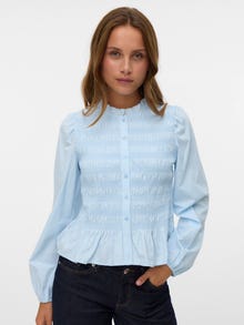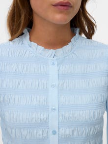 Kas otsid endale uut igapäevast lemmikpluusi? Meil on idee. Sellest topist saab hõlpsasti sinu uus valik päevadel, mil sul pole tuju millegi erilise jaoks, kuid soovid siiski trendikas välja näha. Tee see mõne ehtega pisut säravamaks või hoia kerge jakiga lihtsat joont. - Toote tüüp : Topp - Kaelaosa : Ümmargune kaelus - Varrukas : Pikad varrukad - Varrukad : Volüümikad varrukad - Mansetid : Venivad mansetid - Täiendav info : Rüüsid - Lõige : Tihedalt liibuv lõige - Eluviis : Traditsiooniline