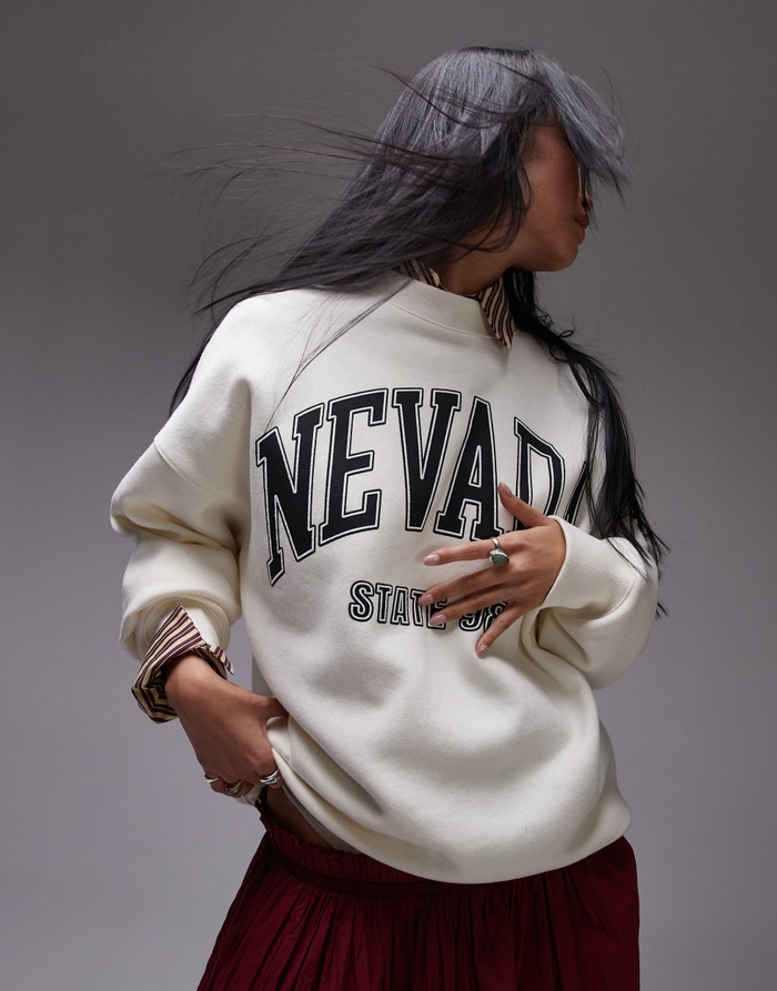 Topshop graphic Nevada oversized sweat in ecru - CREAM