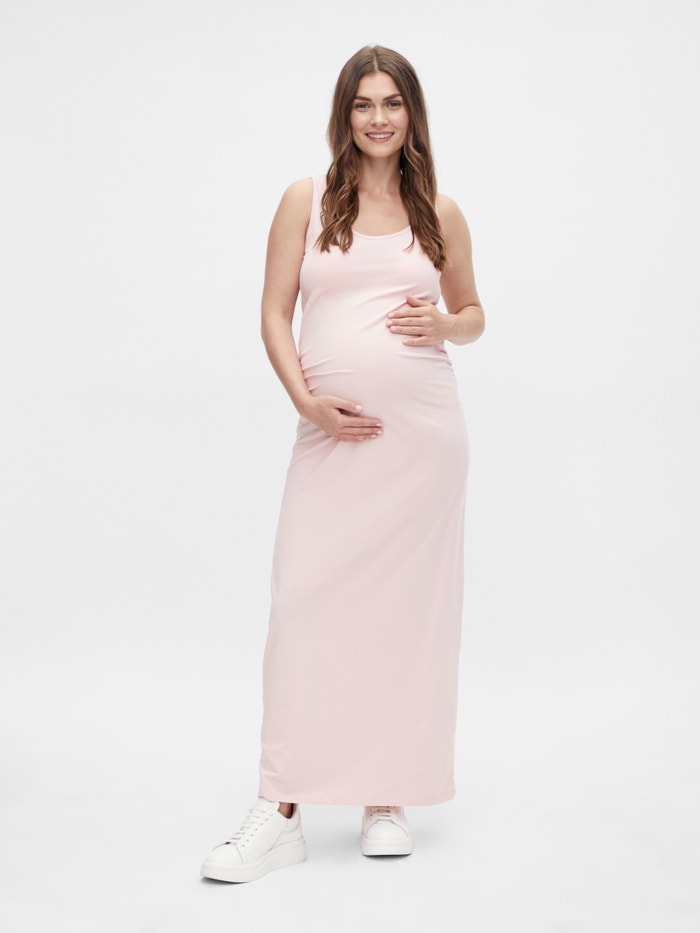 LDS MATERNITY KNITTED LONG DRESS, GATHERINGS IN FRONT SIDES, DOUBLE STITCH AT HEM.