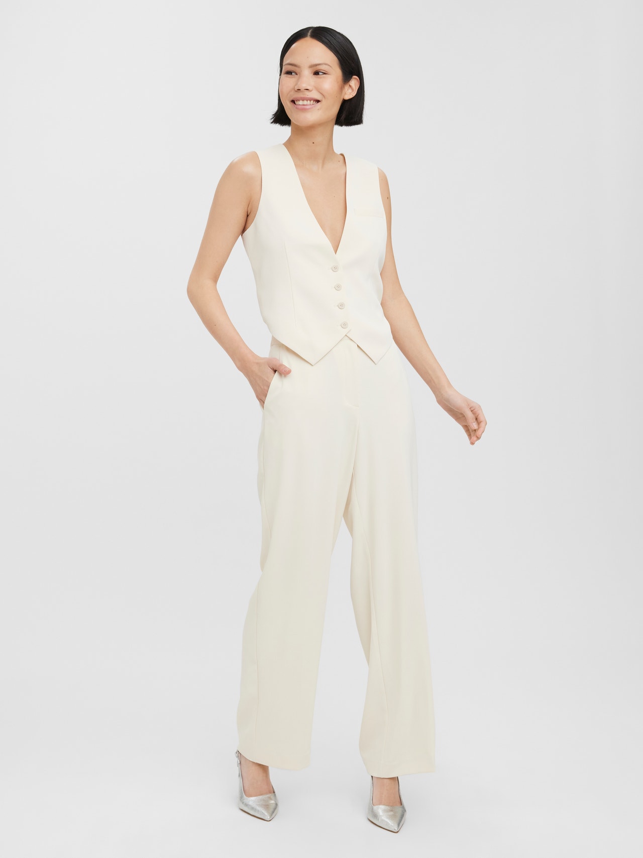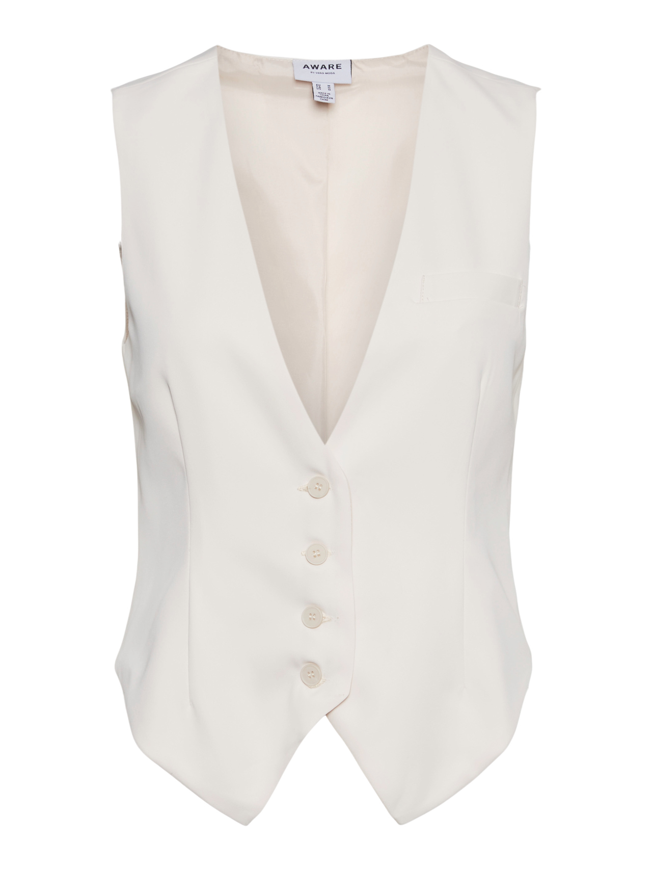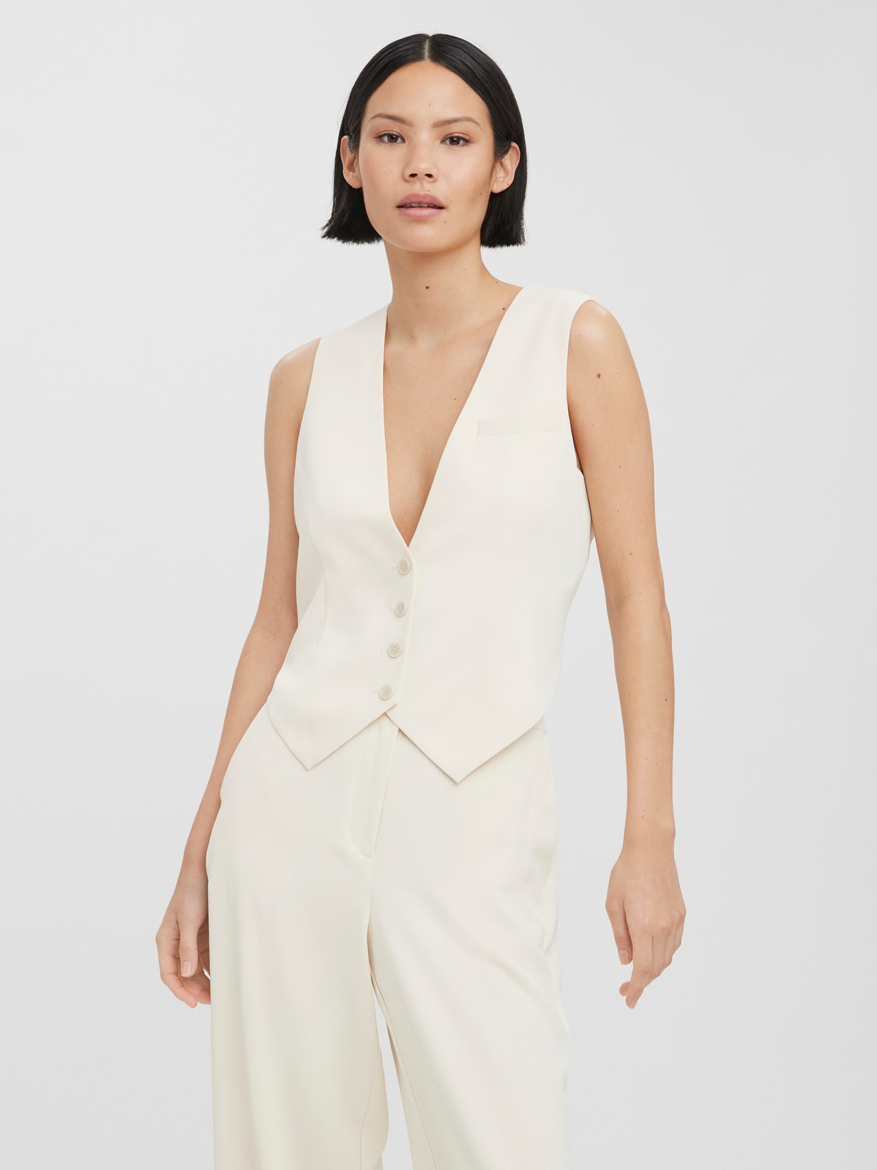 Tailored waistcoat with a V-neck, cutlines for shaping, and a fake chest pocket. Style this cool waistcoat with a pair of wide trousers and some heels for a gorgeous look.