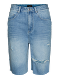 Long denim shorts with a high waist, belt loops, and destroy details. Style these cool shorts with a singlet top and a pair of sneakers for a simple summer look.