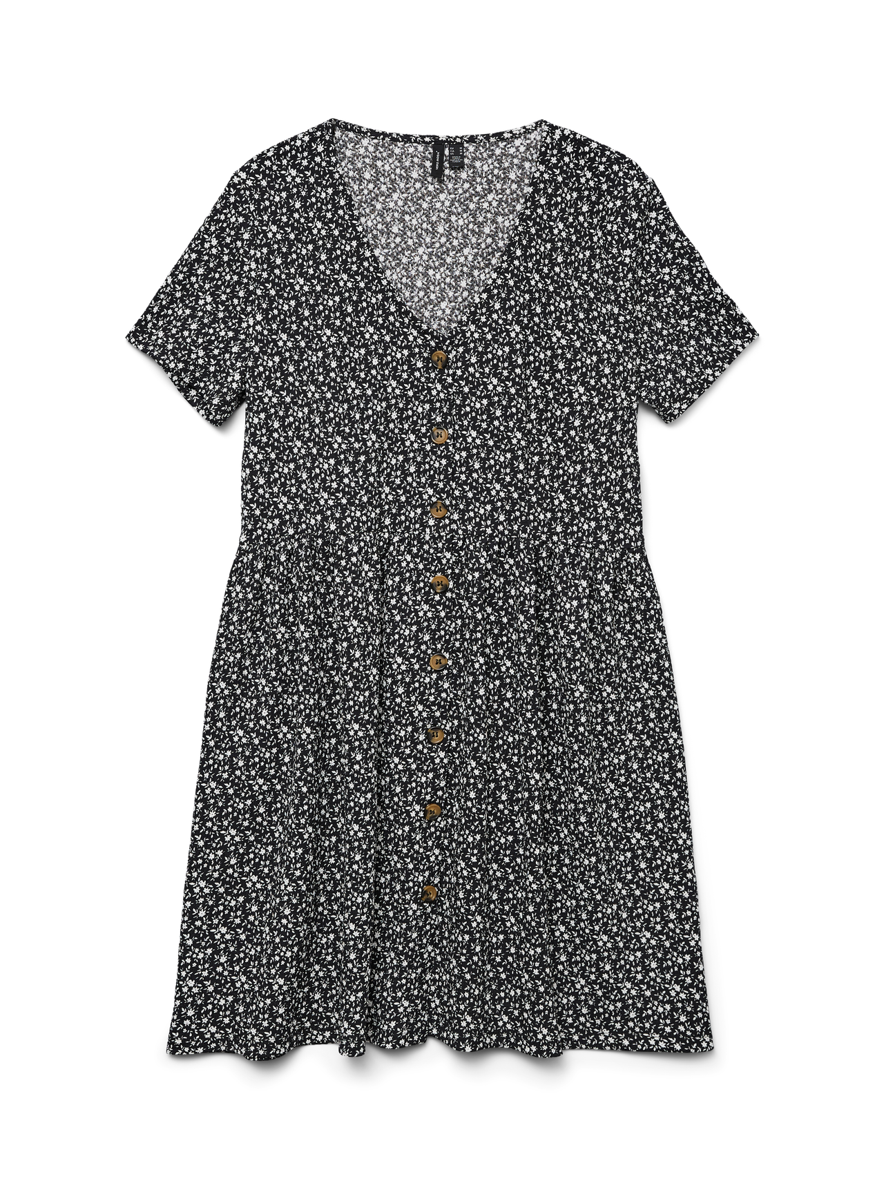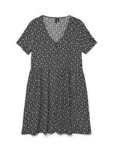 Tämä mekko sopii täydellisesti päiviin, joina asun luominen vaikuttaa mahdottomalta tehtävältä. Mukavuuden ja tyylikkyyden yhdistäminen tekee tästä mekosta täydellisen arjen luottotuotteen. Pue se arkisemmin tai juhlavammin makusi mukaan. - Tuotetyyppi : Mekko - Kaula : V-pääntie - Hiha : Lyhyet hihat - Sulkeminen : Nappikiinnitys - Pituus/koko : Lyhyt - Printtityyppi : Kuvio toistuu kauttaaltaan tuotteen pinnassa - Malli : Regular fit