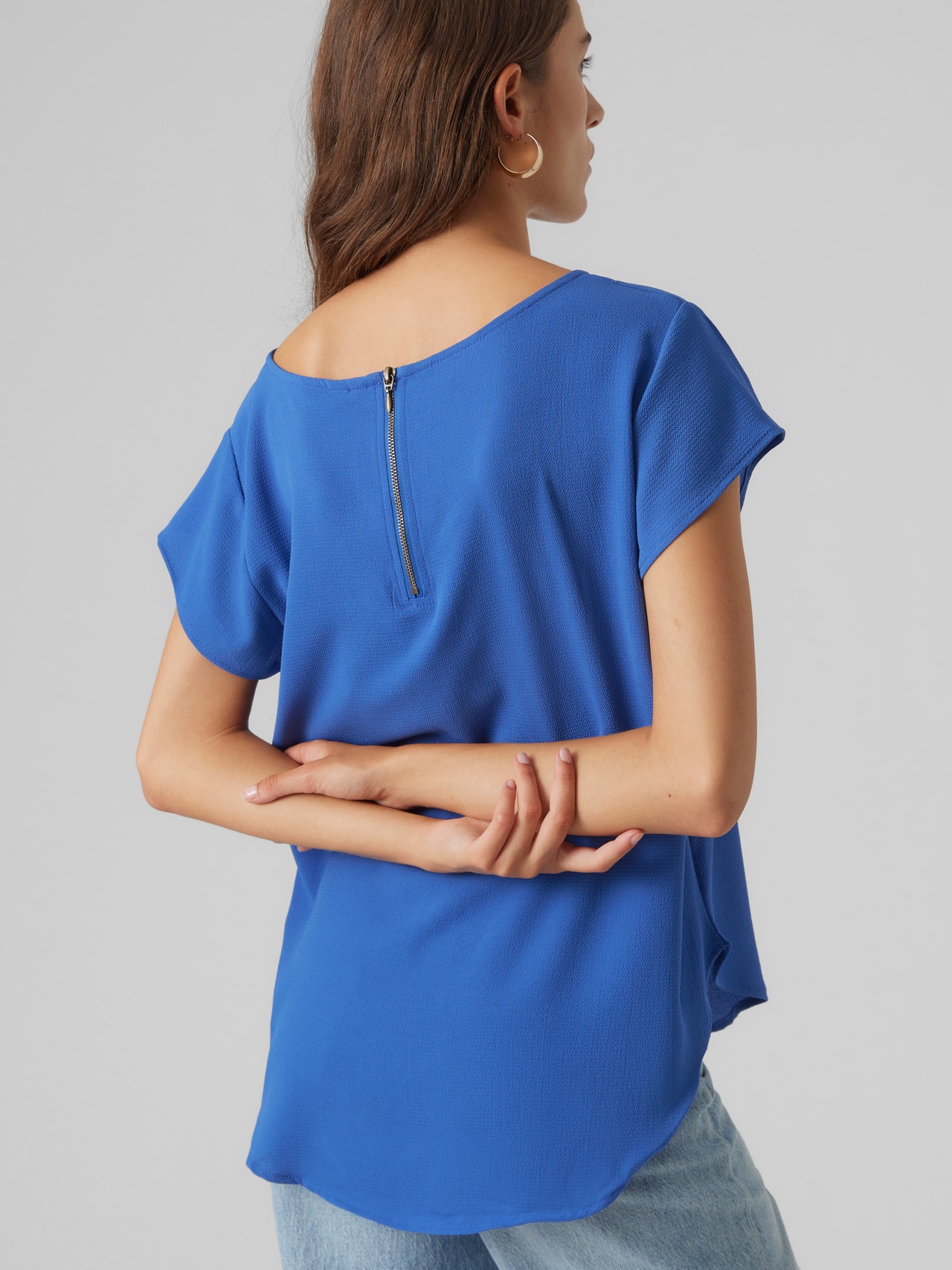 Perusvaatteeita löytyy varmasti lähes jokaisen vaatekaapista. Perusmallisten toppiemme avulla sidot asun yhteen, eikä tämä yksilö tee poikkeusta sääntöön. Yhdistä se paitatakin, rentojen mom jeans -farkkujen ja paksukorkoisten saappaiden kanssa, niin saat rennon ja coolin arkiasun. - Tuotetyyppi : Pusero - Kaula : O-pääntie - Hiha : Lyhyet hihat - Lisä yksityiskohdat : Koristevetoketju - Malli : Regular fit