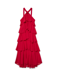 Jokainen juhla ansaitsee oikeanlaisen juhlamekon. Tämä katseet kääntävä mekko saa sinut juhlatuulelle hetkessä. Yhdistä se korkojen kanssa ja lisää asuun suosikkijuhla-asusteesi ja vaikuttava juhlailmeesi on valmis. - Tuotetyyppi : Juhlamekko - Kaula : Halterneck - Hiha : Hihaton - Sulkeminen : Vetoketjukiinnitys - Pituus/koko : Maksipituus - Lisä yksityiskohdat : Röyhelöt, Avonainen selkä - Malli : Regular fit