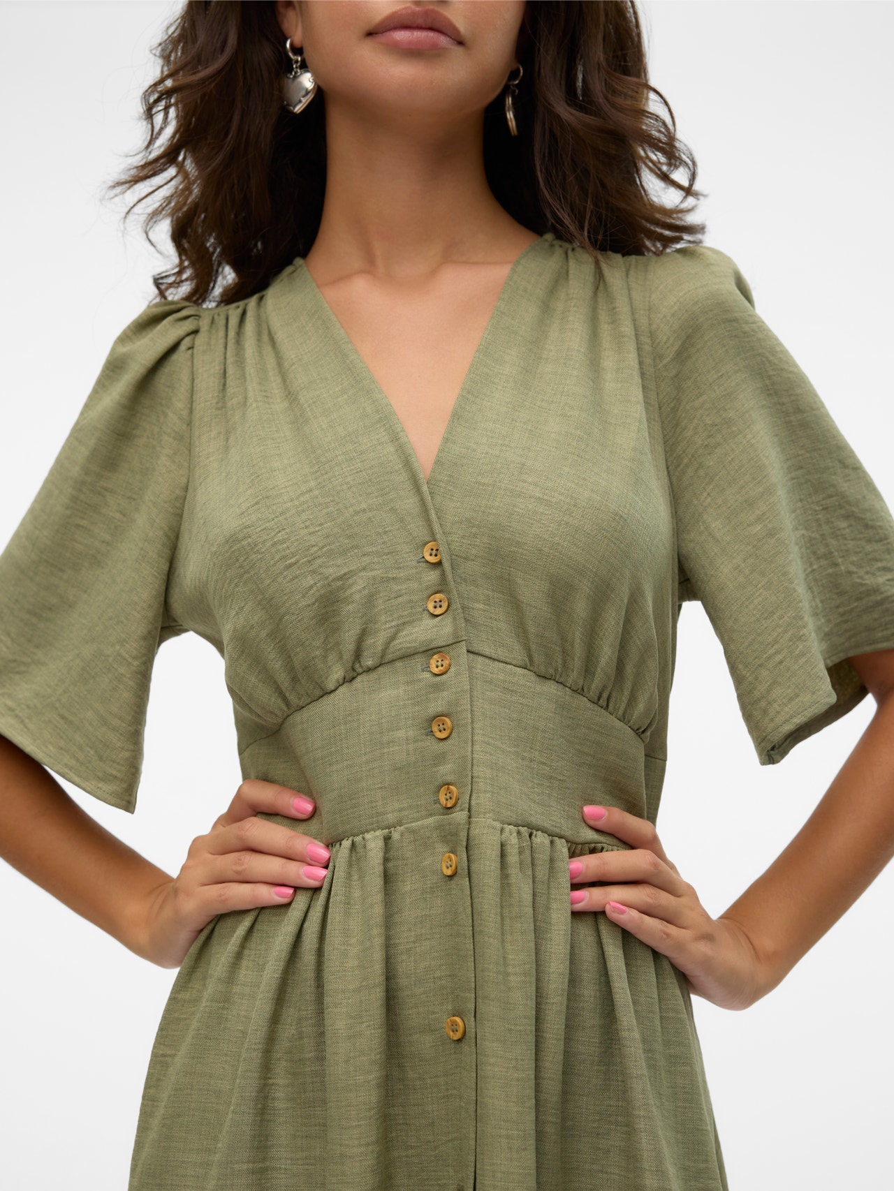 - Lisä yksityiskohdat : Koristenapit, Leikkauslinja vyötäröllä, Kuminauhavyötärö, Poimutus