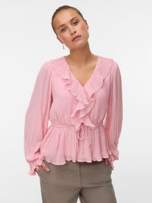 Etsitkö uutta lempiarkitoppia? Meillä olisi yksi vaihtoehto. Tästä topista tulee heittämällä uusi luottovaatteesi niille päiville, kun et jaksa säväyttää, mutta haluat silti näyttää trendikkäältä. Yhdistä korujen kanssa ja lisää asuun hieman kimallusta, tai pidä asu yksinkertaisena kevyen takin avulla. - Tuotetyyppi : Toppi - Kaula : V-pääntie - Hiha : Pitkät hihat - Hihansuut : Joustavat hihansuut - Vuori : Läpinäkymätön polyesterivuori - Lisä yksityiskohdat : Röyhelöt - Malli : Regular fit