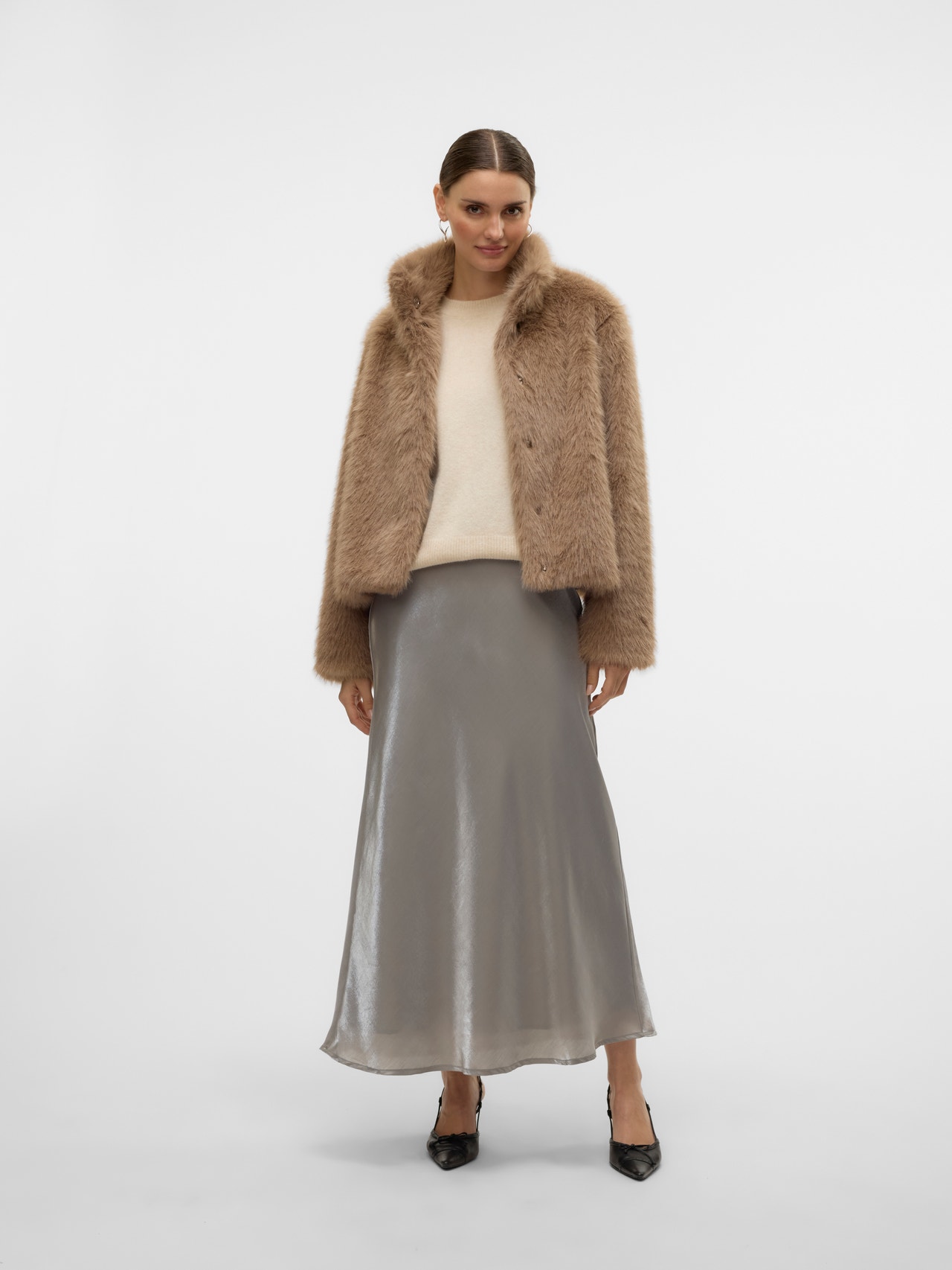 Ulkovaatteet voivat olla samaan aikaan niin käytännöllisiä kuin kauniita. Tämän takin avulla piristät ilmettäsi hetkessä. Elegantti muotoilu luo ajattoman ilmeen, joka sopii yhteen minkä tahansa kanssa. Yhdistä eleganttiin mekkoon ja korkoihin, niin saat katseen kääntävän juhlailmeen. - Tuotetyyppi : Synteettinen turkistakki - Kaula : Korkea pystykaulus - Hiha : Pitkät hihat - Sulkeminen : Painonappikiinnitys - Taskut : Sivutaskut - Vuori : Miellyttävän tuntuinen polyesterivuori