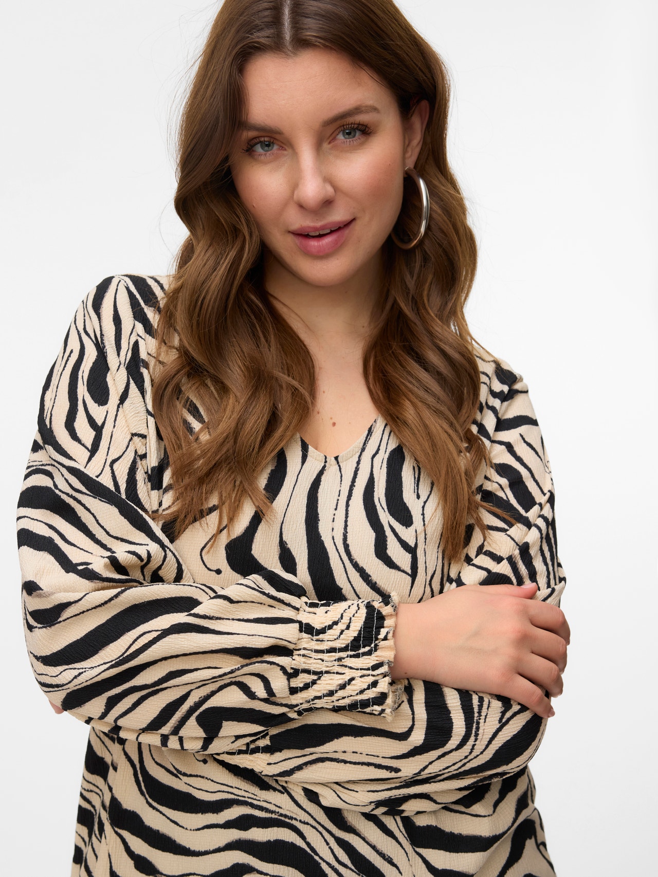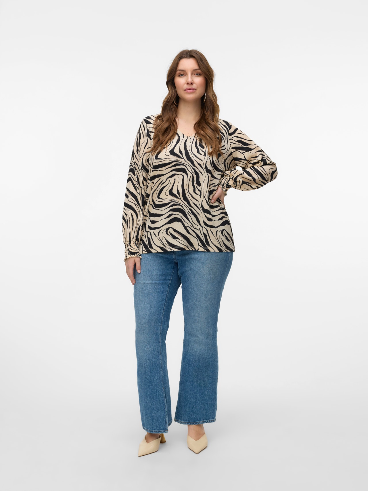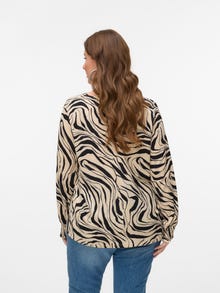 Etsitkö uutta lempiarkitoppia? Meillä olisi yksi vaihtoehto. Tästä topista tulee heittämällä uusi luottovaatteesi niille päiville, kun et jaksa säväyttää, mutta haluat silti näyttää trendikkäältä. Yhdistä korujen kanssa ja lisää asuun hieman kimallusta, tai pidä asu yksinkertaisena kevyen takin avulla. Curve-malliston vaatteet on suunniteltu kurvikkaalle naisvartalolle.. - Tuotetyyppi : Pusero - Kaula : V-pääntie - Hiha : Pitkät hihat - Printtityyppi : Kuvio toistuu kauttaaltaan tuotteen pinnassa - Malli : Regular fit